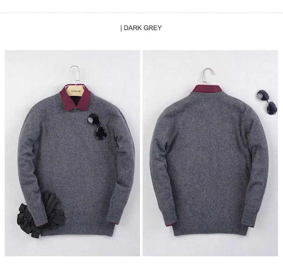 Men’s Winter O-Neck Business Cashmere Blend Sweater Knitted Pullover Autumn Casual&Fashion Soft Long Sleeve Knitwear 100% Cashme
