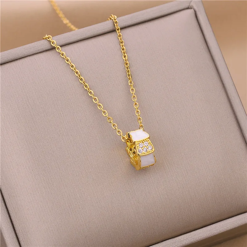 MEYRROYU Luxury Zircon Crystal Pendant Clavicle Chain Necklace For Women Stainless Steel Jewelry Female Wedding Party Accessorie