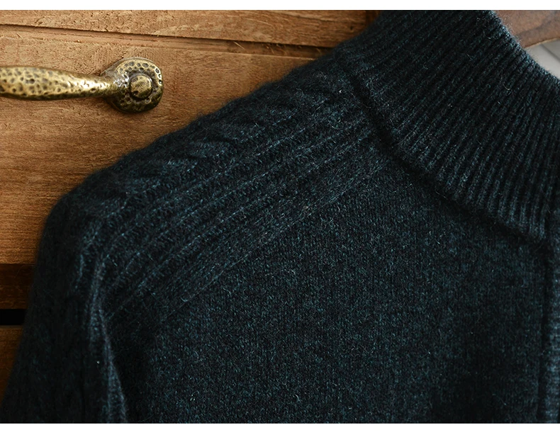 Middle-aged men’s thick 100% pure cashmere sweater winter stand-up collar zipper half high collar loose warm knit leisure