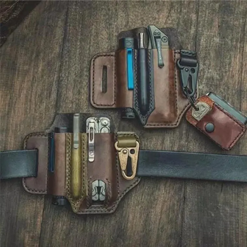 Multitool Sheath for Belt Leather Sheath for Man EDC Pocket Organizer Tool Pouch with Pen Holder Key Fob Pouch