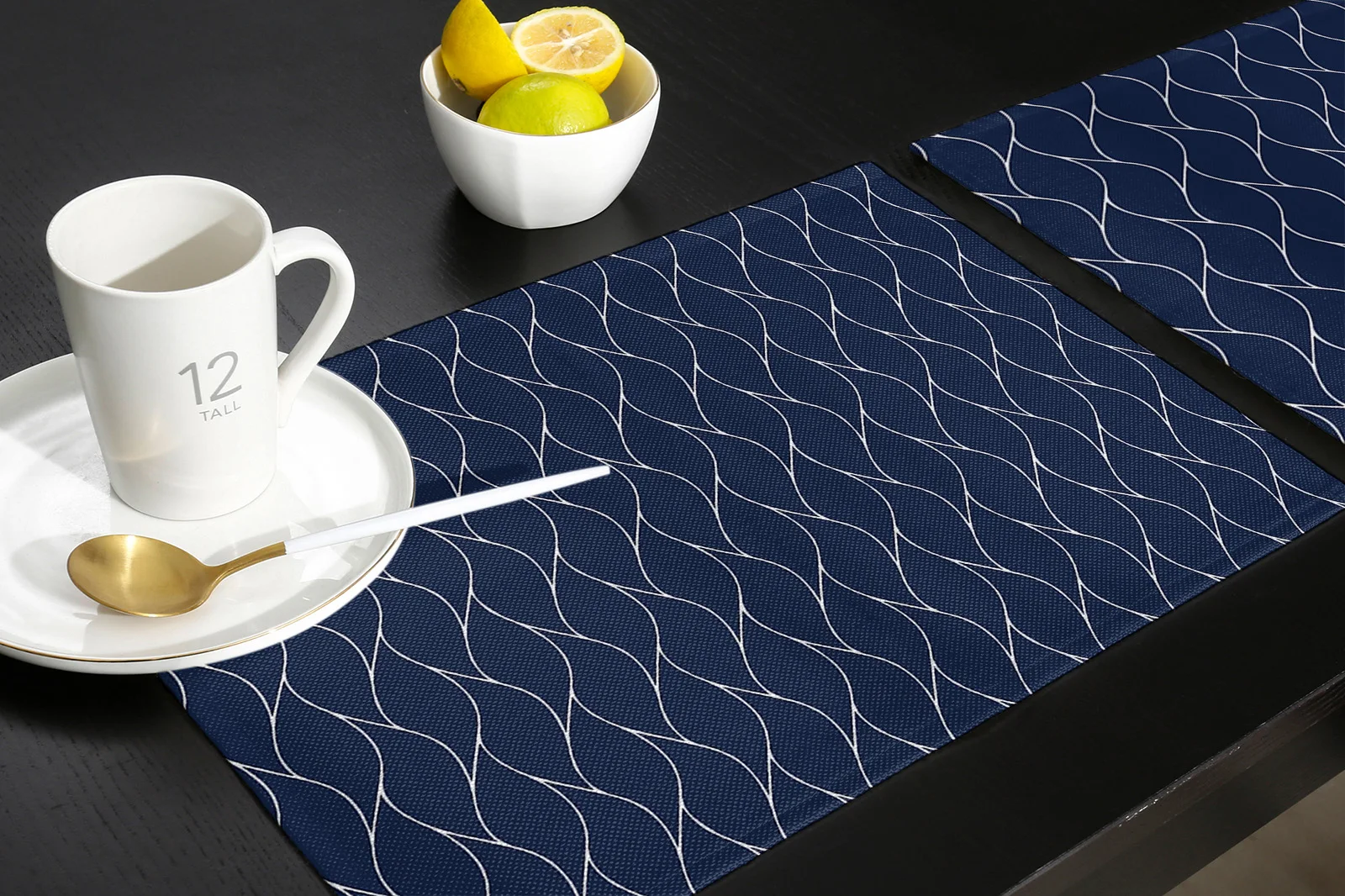 Navy Blue Long Wave Pattern Kitchen Dining Table Decor Accessories 4/6pcs Placemat Heat Resistant Linen Tableware Pads Mats