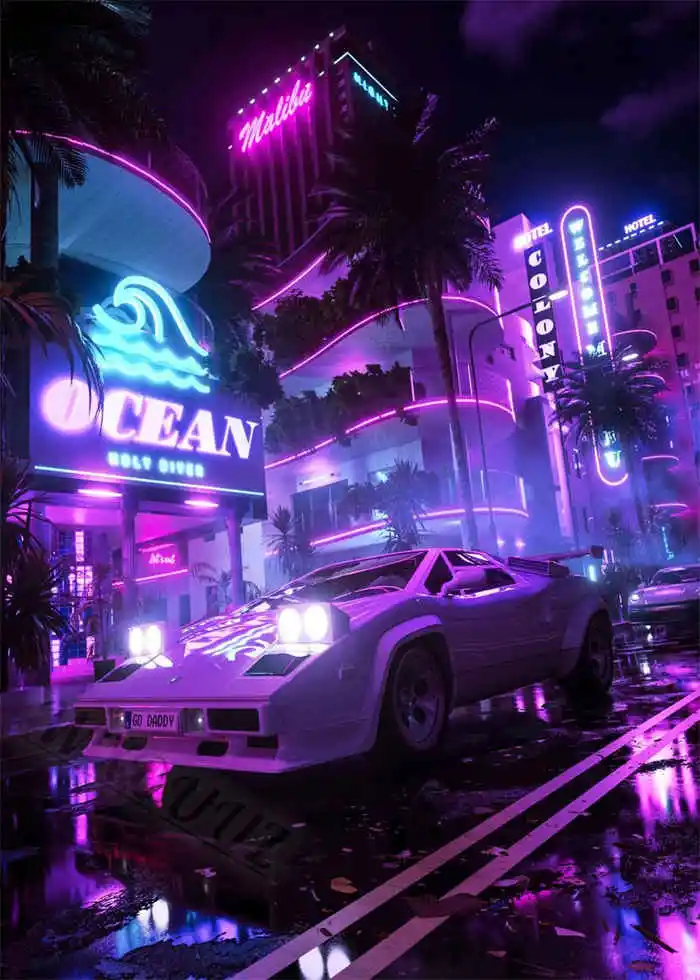 Neon Night City Landscape 80s Retro Cyberpunk Car Posters For Room Aesthetic Painting Canvas Print Home Art Wall Decor Pictures