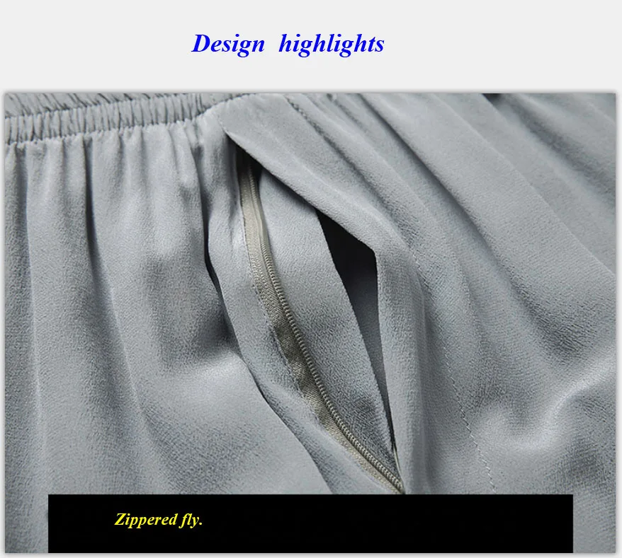 New arrival man pure silk crepe-de-chine elastic waist pocket loose shorts,100% silk mid-rise casual five pants,with gift mask
