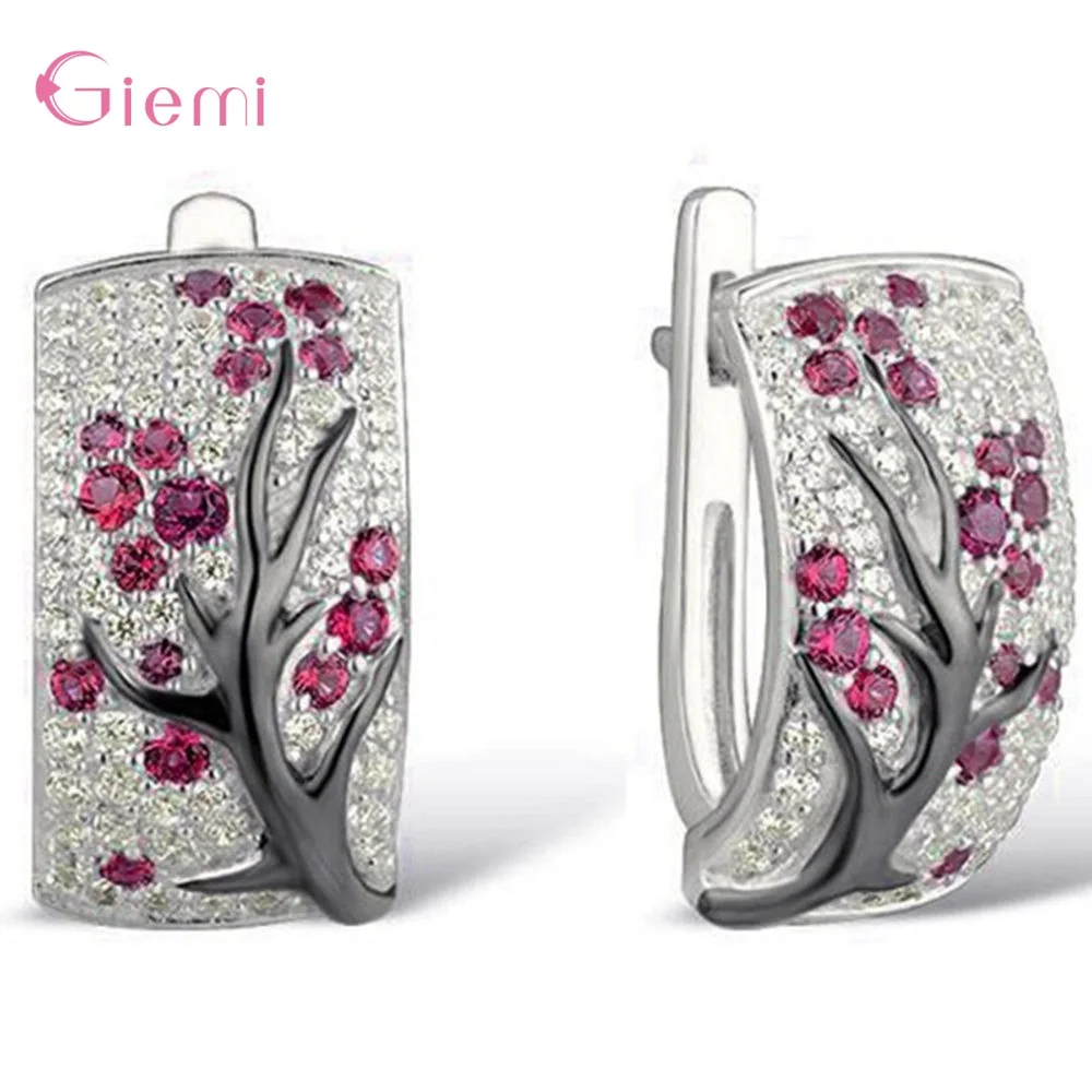 New Arrivals 925 Sterling Silver Trendy Charms Crystal Paved Tree Branches Wide Hoop Earrings For Women Girls Party Jewelry