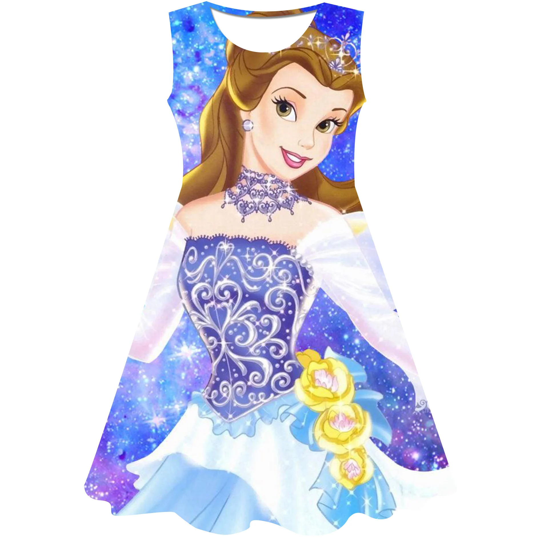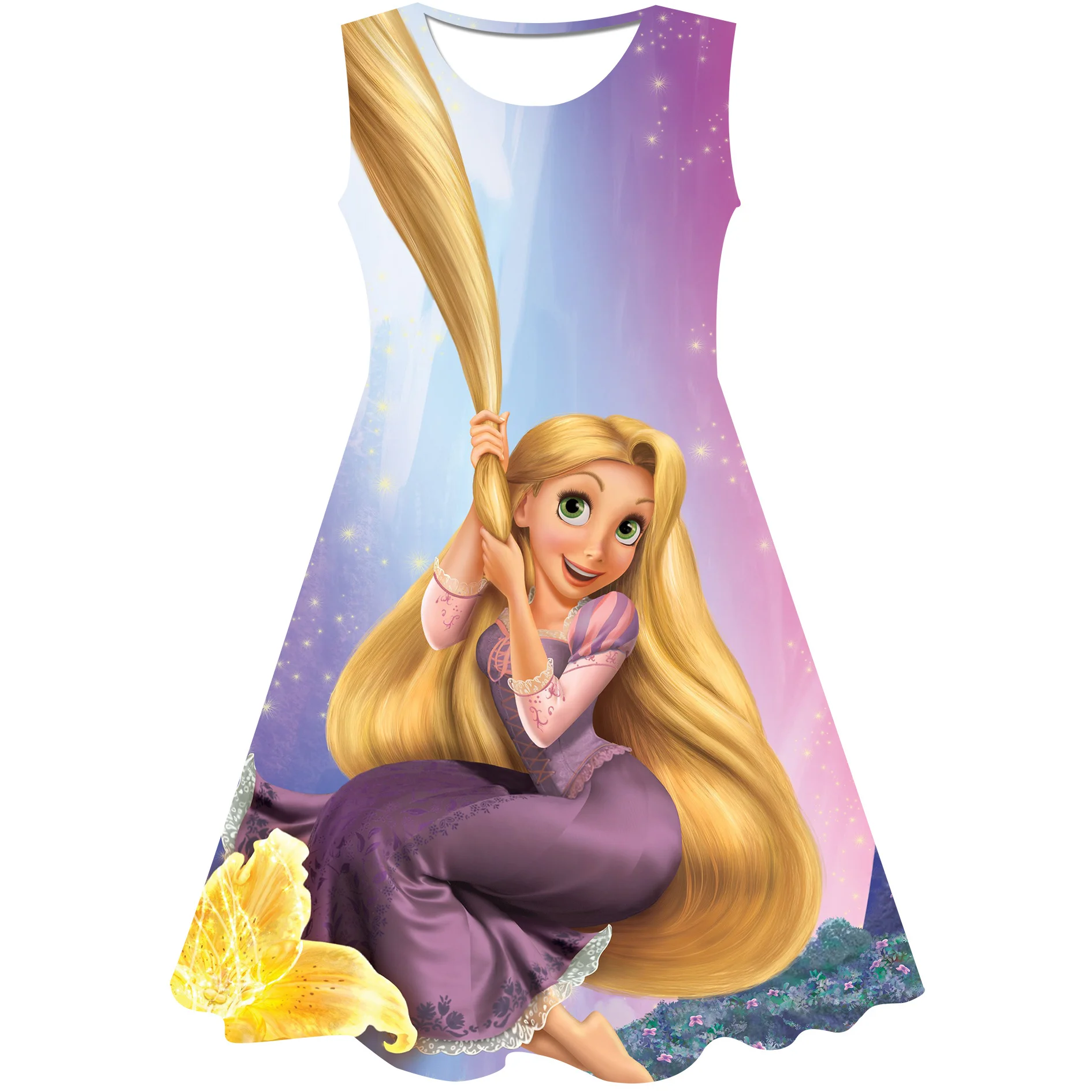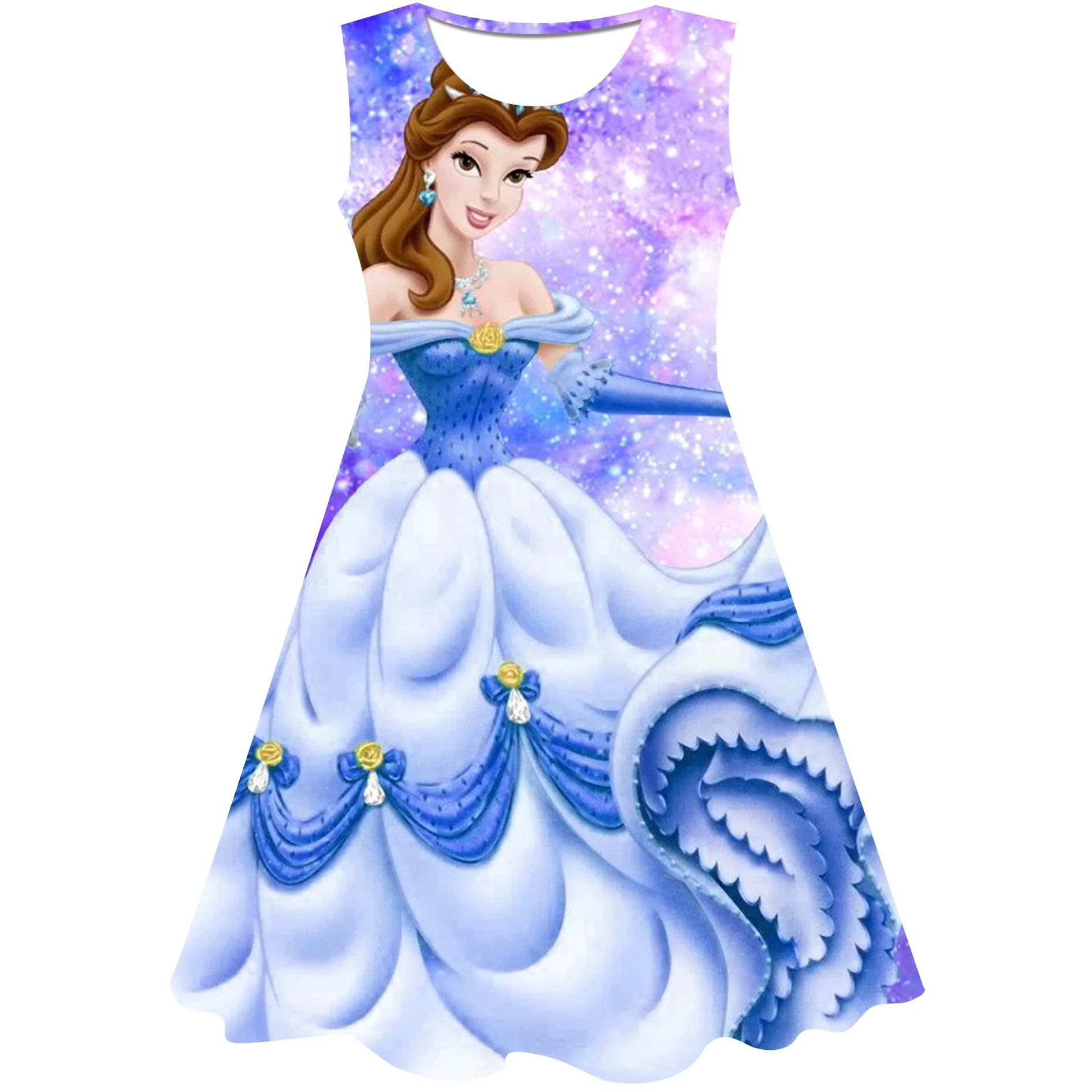 New Cinderella Dress Girls Party Vestidos Cosplay Girl Clothing Rapunzel Belle Princess Print Birthday Dress Kids Costumes