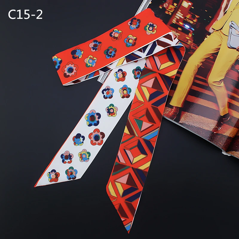 New Design Camellia Scarf Geometric Print Women Silk Scarf Fashion Head Scarf Brand Handle Bag Ribbons Small Long Female Scarves