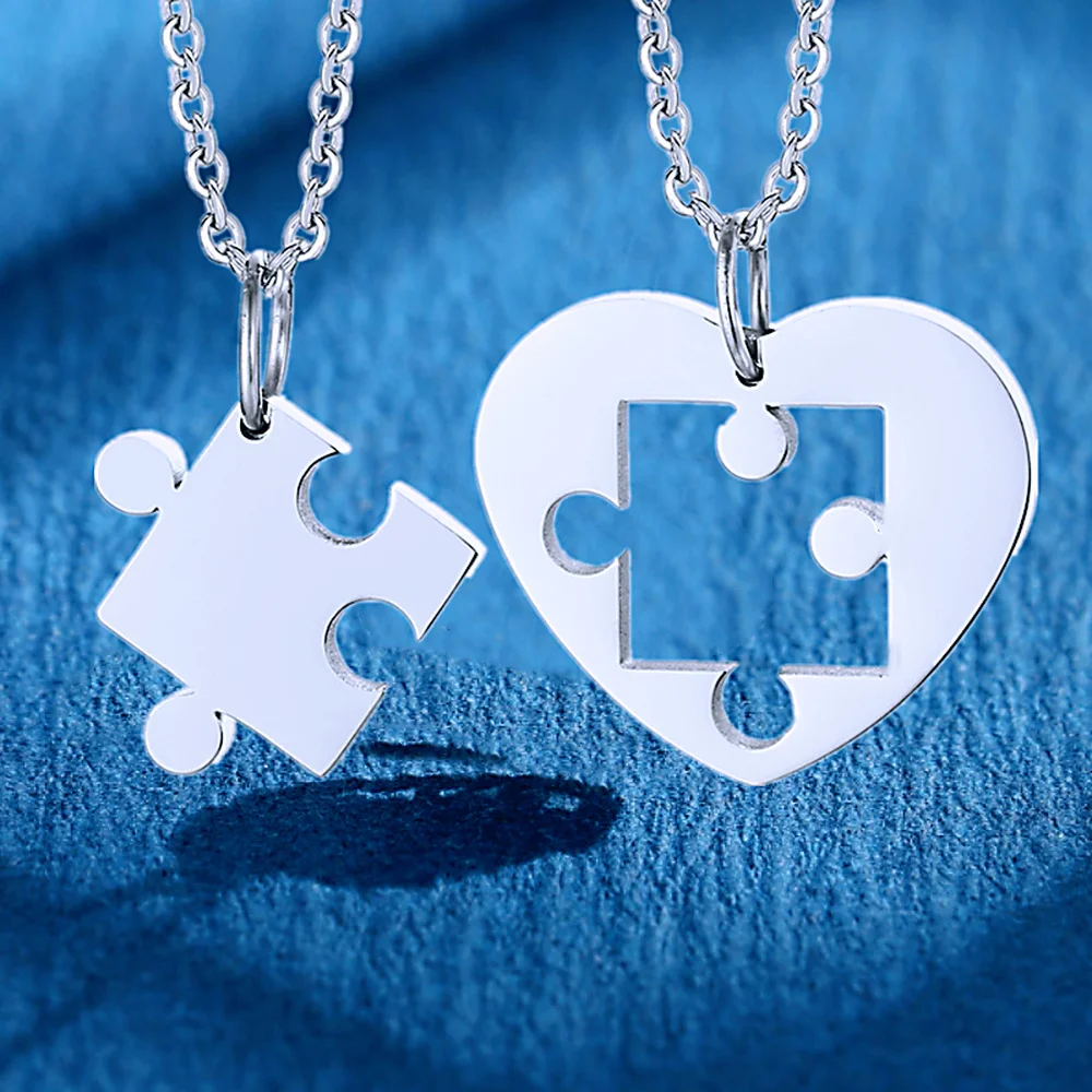 New Design Love Puzzle Couple Necklace Hip Hop Punk Heart Shape Couple Stitching Necklaces for Women Jewelry 2 PCS/Set Wholesale