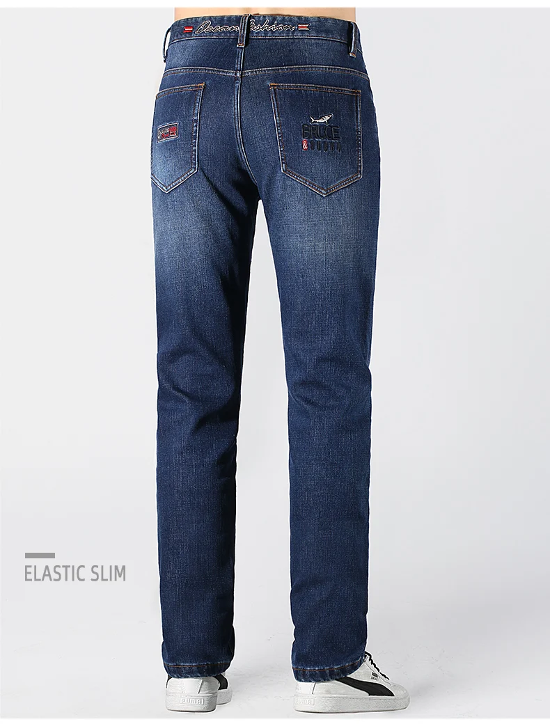 New Jeans Men Thicken Bruce&Shark Winter Clothing Plush jeans Luxury brand Casual Straight Leg Loose Style Trousers Big Size 42