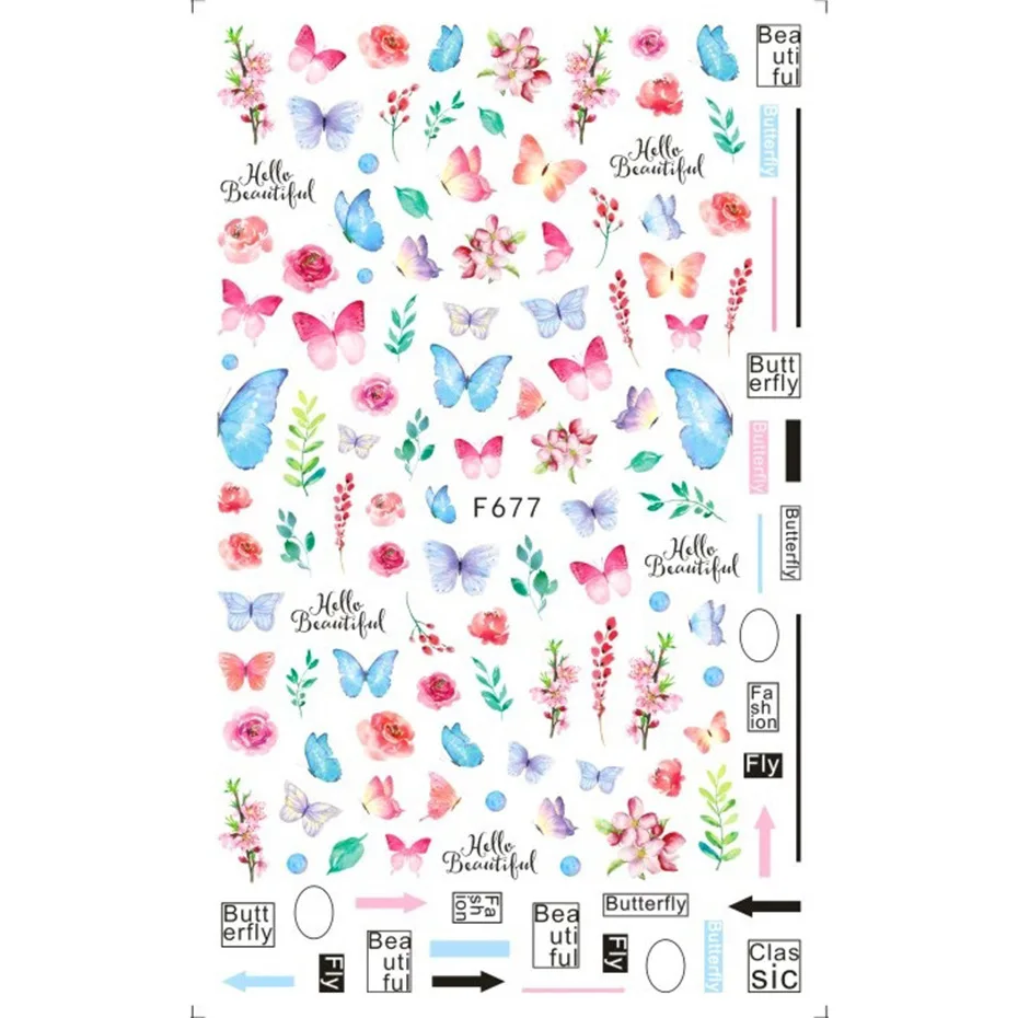 New Luxury Nail Design Colorful Butterfly Nail Sticker 3D Fruit Floral Nail Art Slider Geometric Nail Art Accessories Sticker