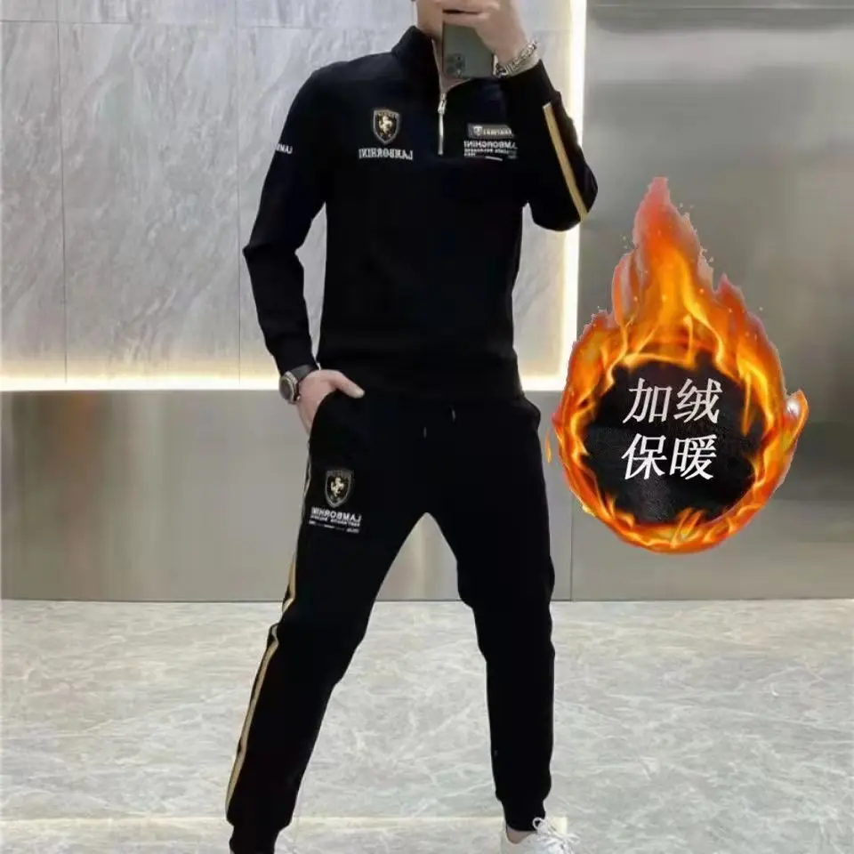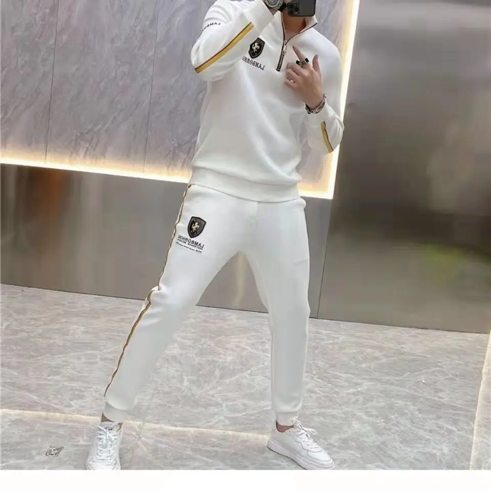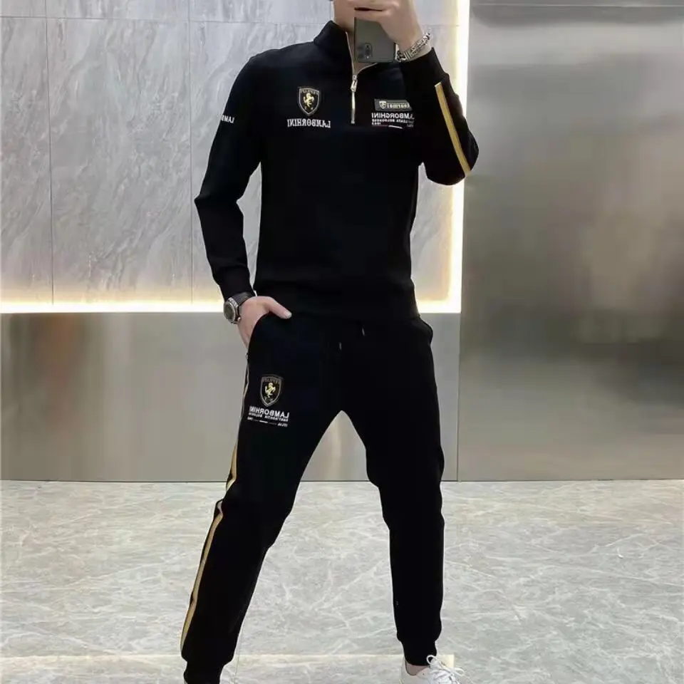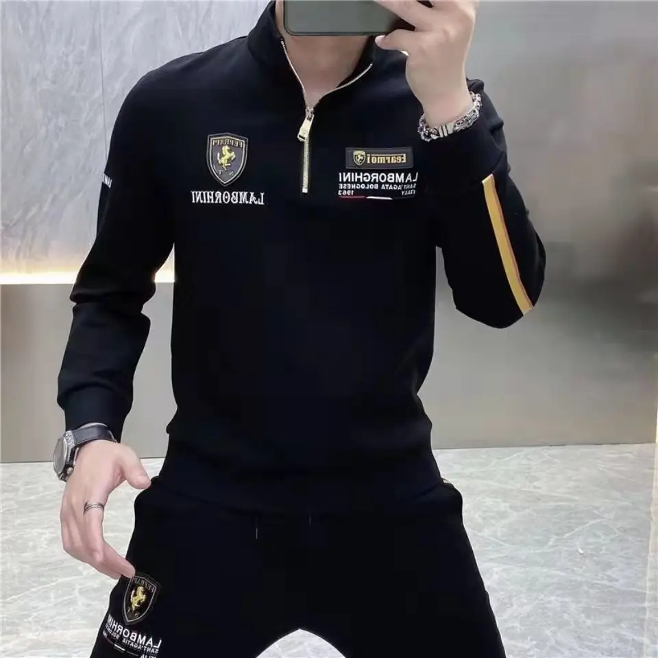 New men’s leisure sports suit, fashion brand, slim fit, youth fashion, high-end autumn and winter stand collar, semi Zip Sweater