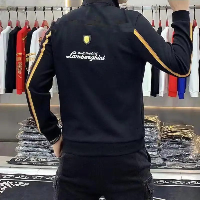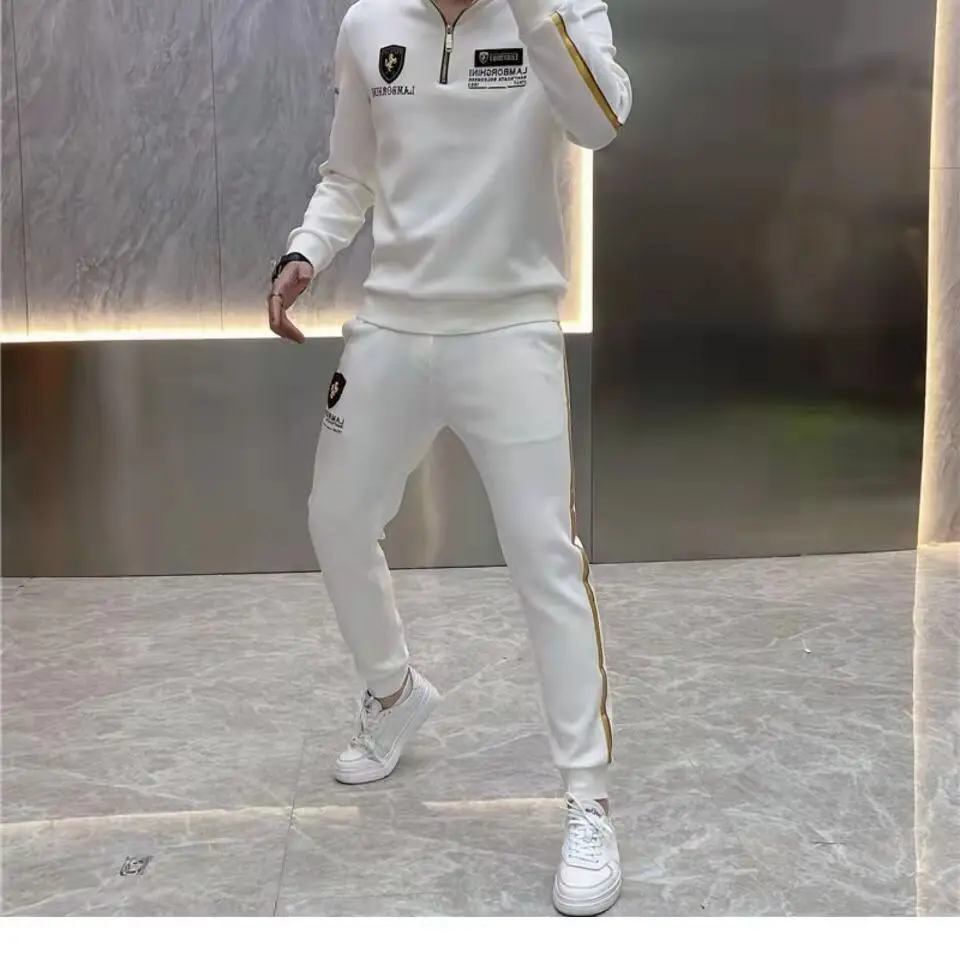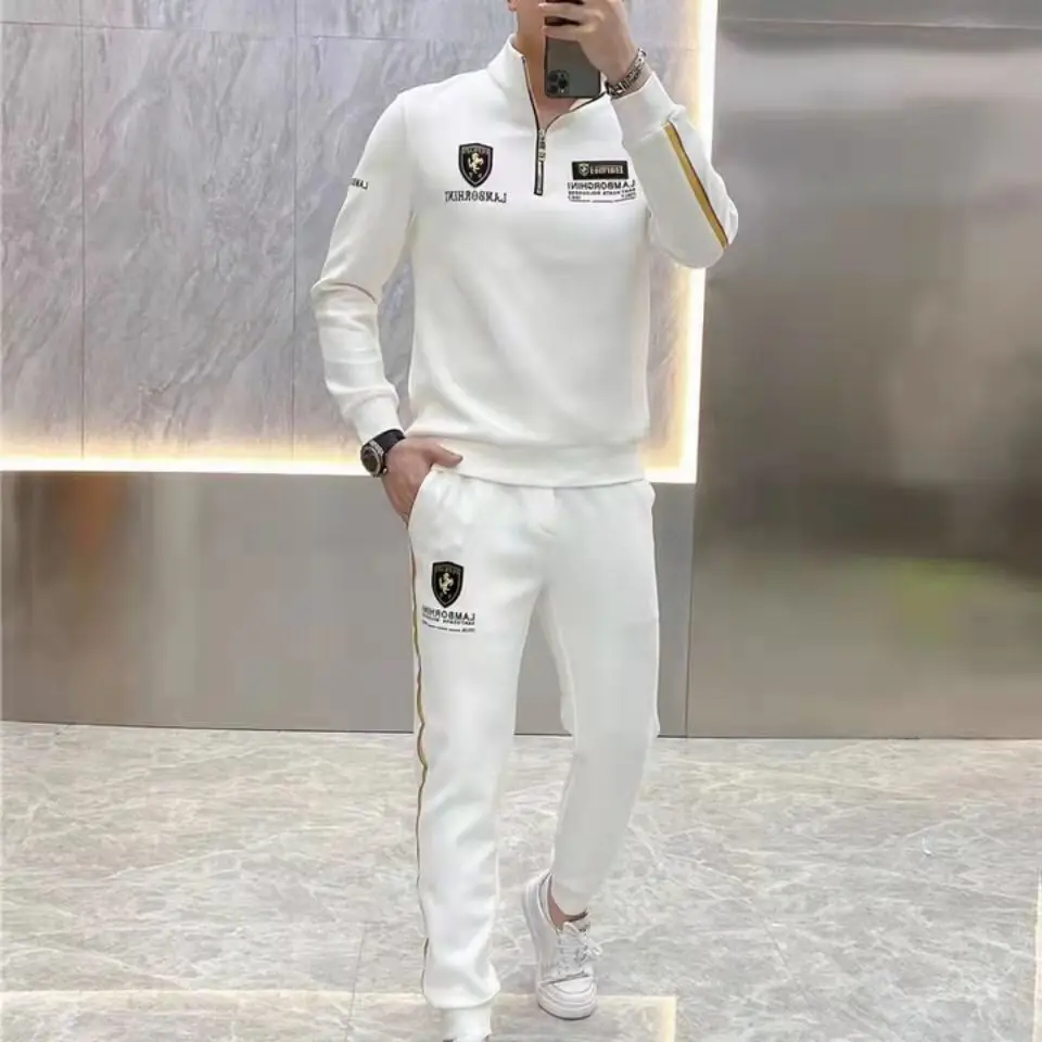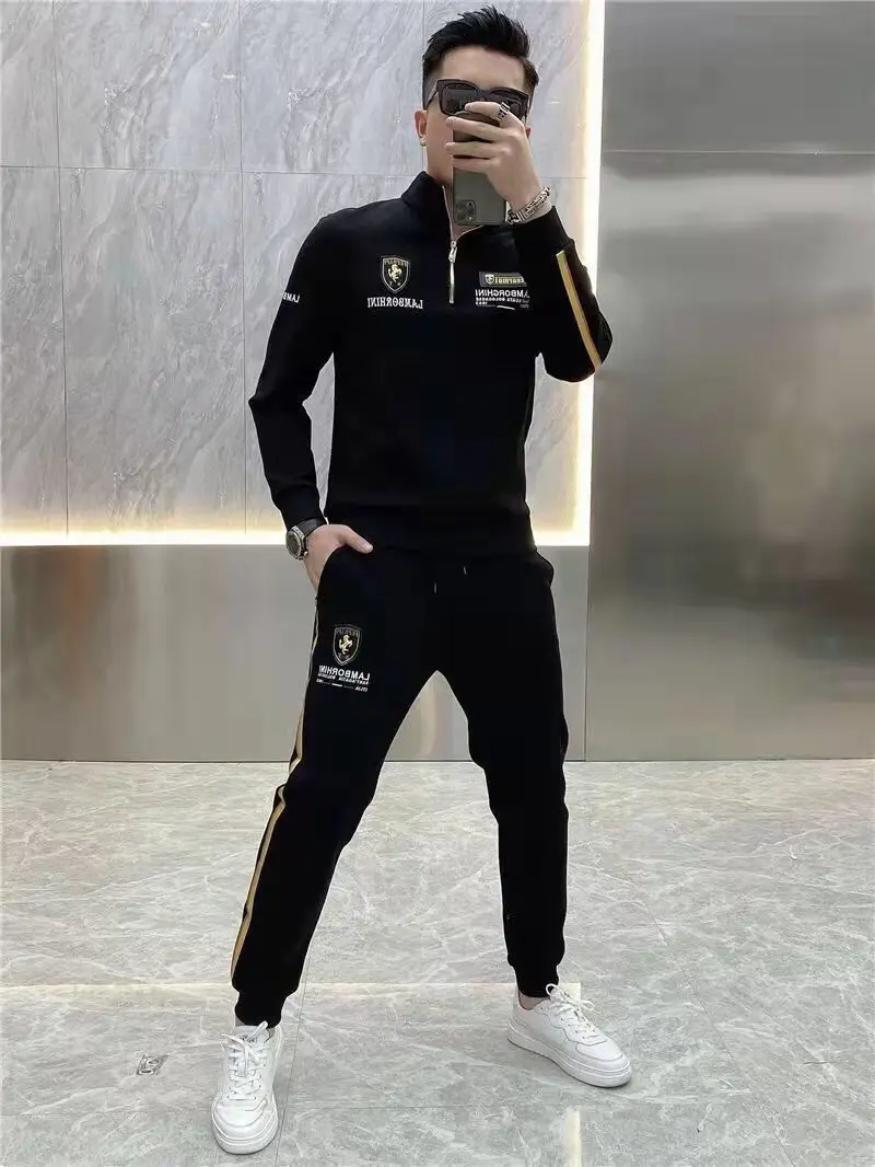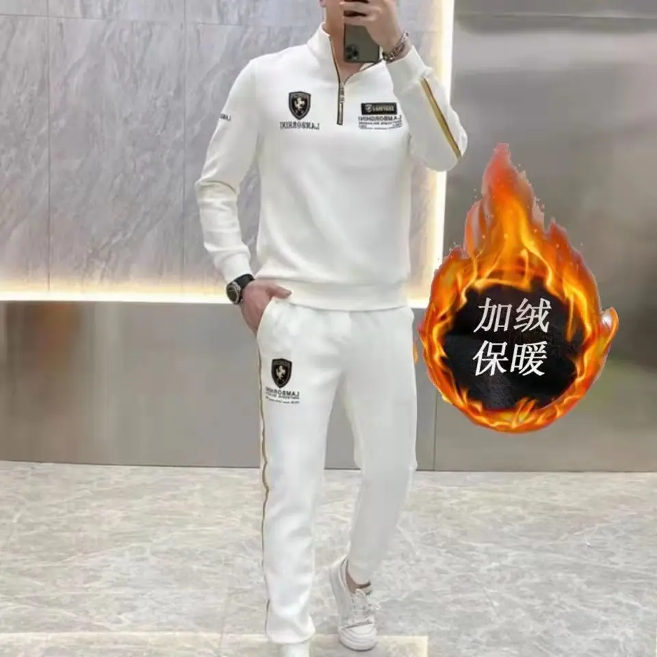 New men’s leisure sports suit, fashion brand, slim fit, youth fashion, high-end autumn and winter stand collar, semi Zip Sweater