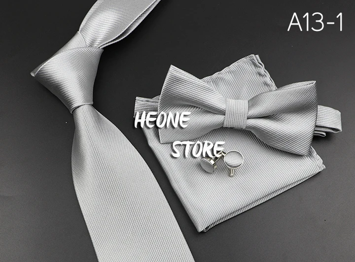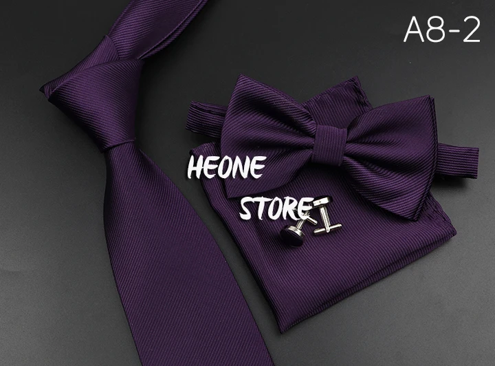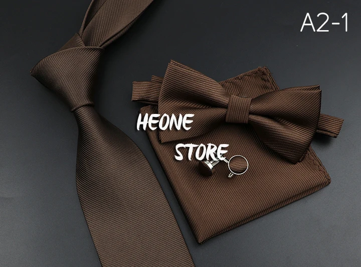 New Men’s Tie Bowtie Set Luxury Business Worker Blue Black Solid Color Silk Polyester Jacquard Woven Necktie Suit Wedding Party