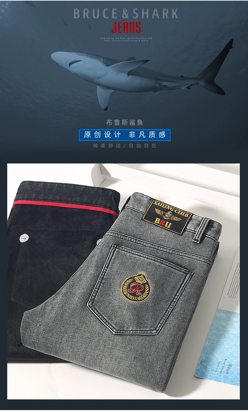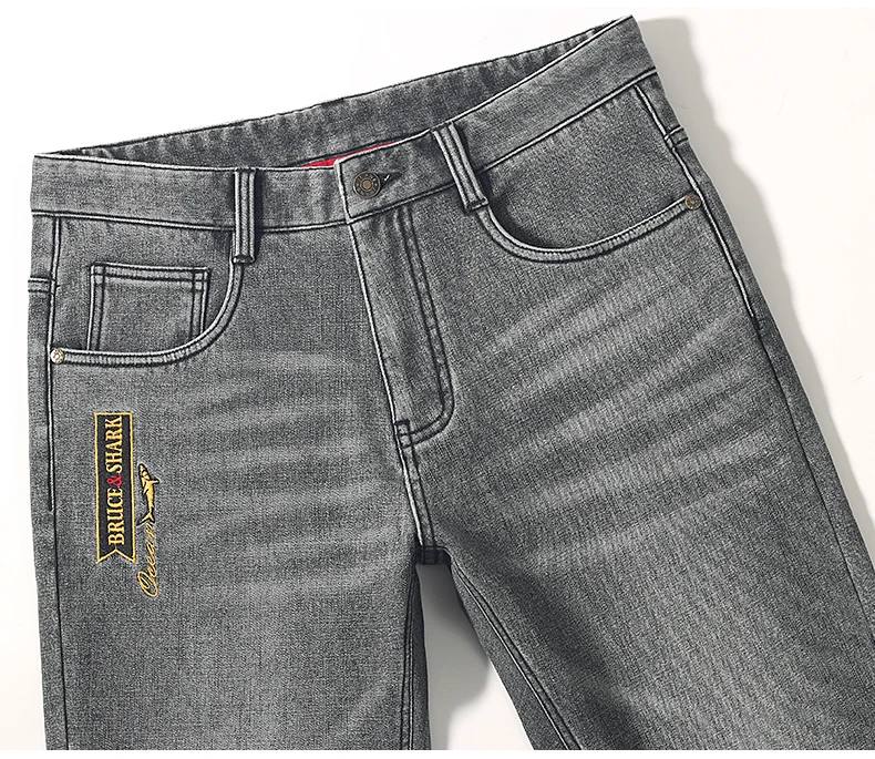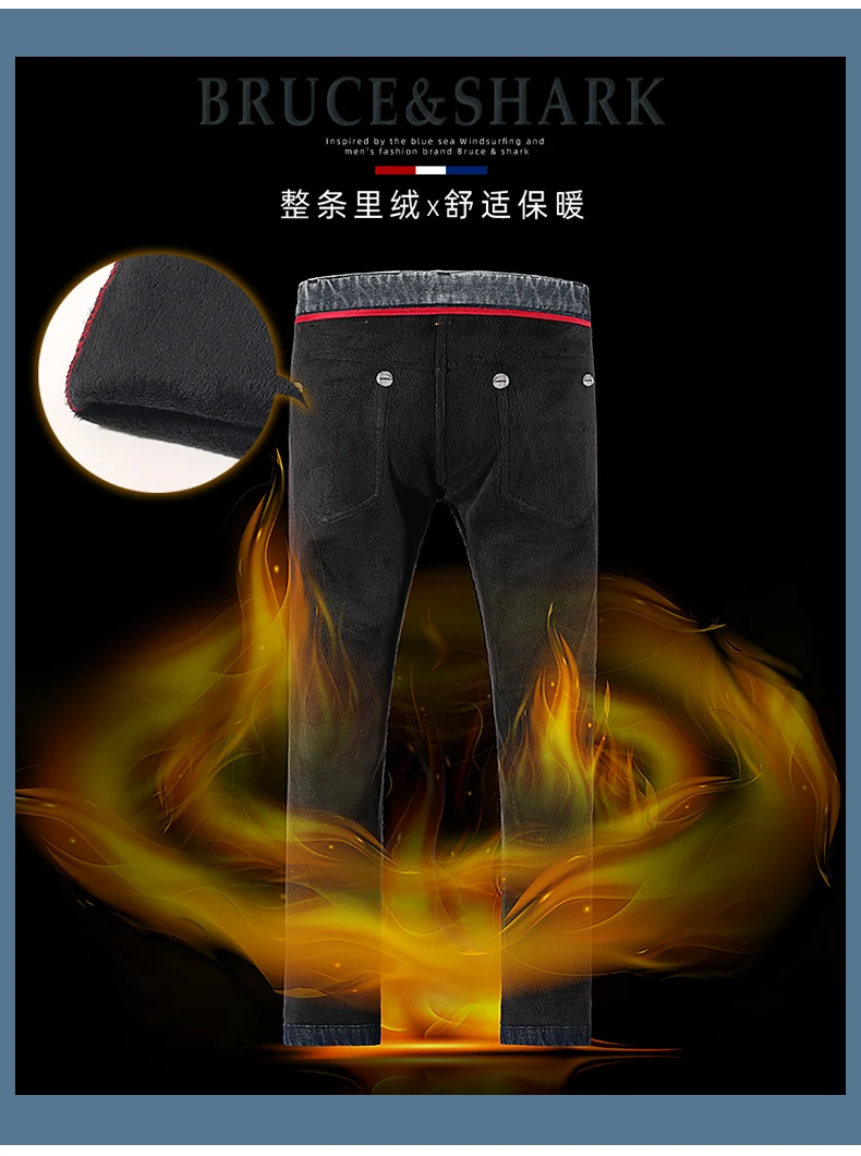 New Plush Jeans Men Thicken Bruce&Shark Men Winter Clothing Trousers Luxury Casual Straight Leg Loose Style Jeans Big Size 42