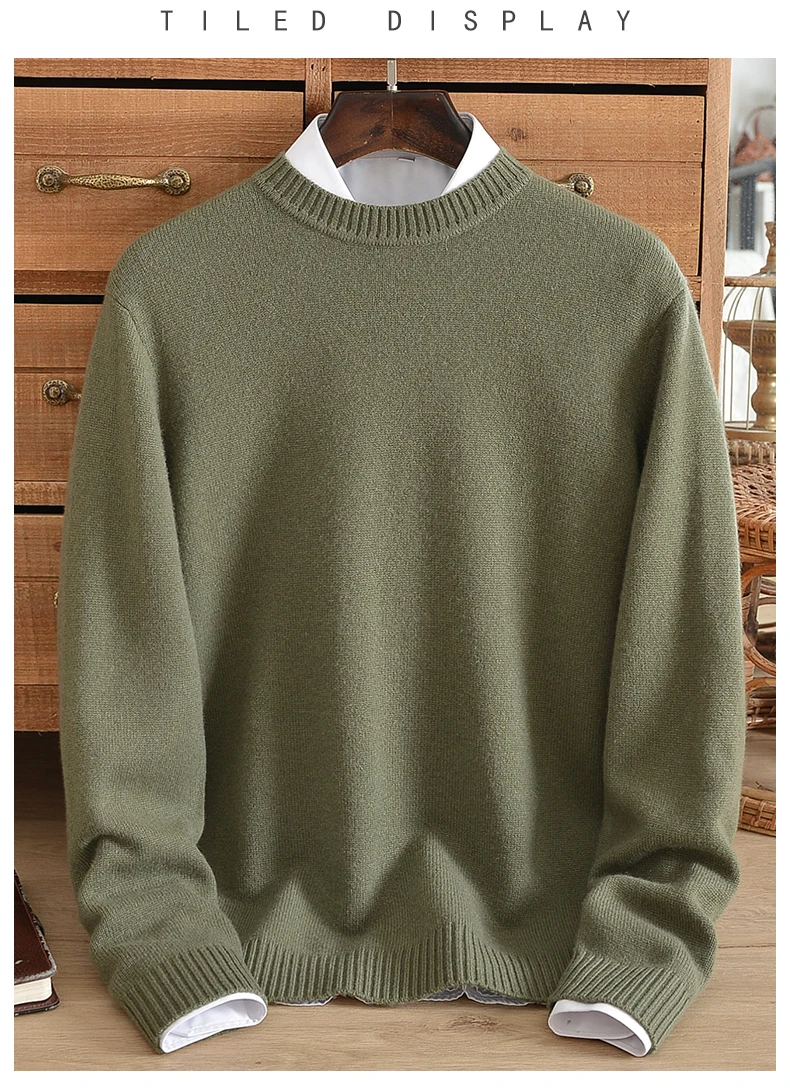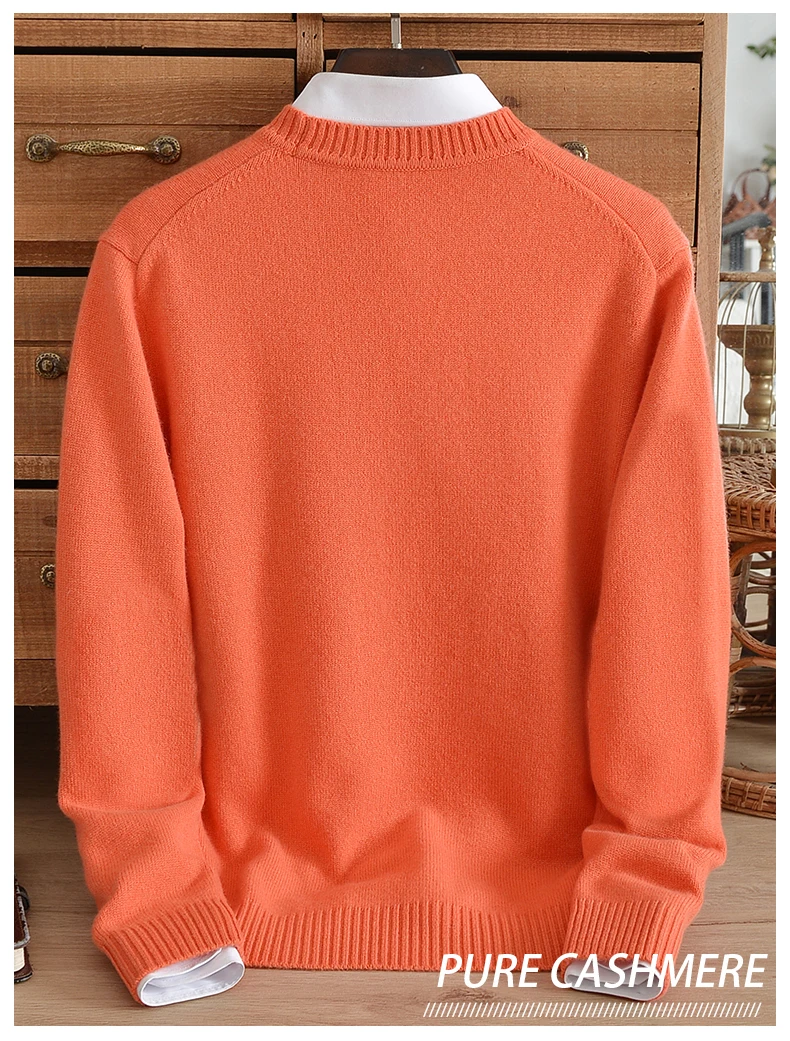 New solid color cashmere sweater men’s pure cashmere round neck thickened knitted winter warm bottoming sweater youth high-end