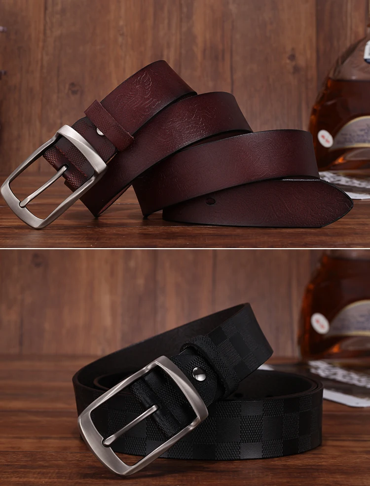 new Trend grid pin buckle male belt leather male belt cowhind fashion business fashion western trousers belt