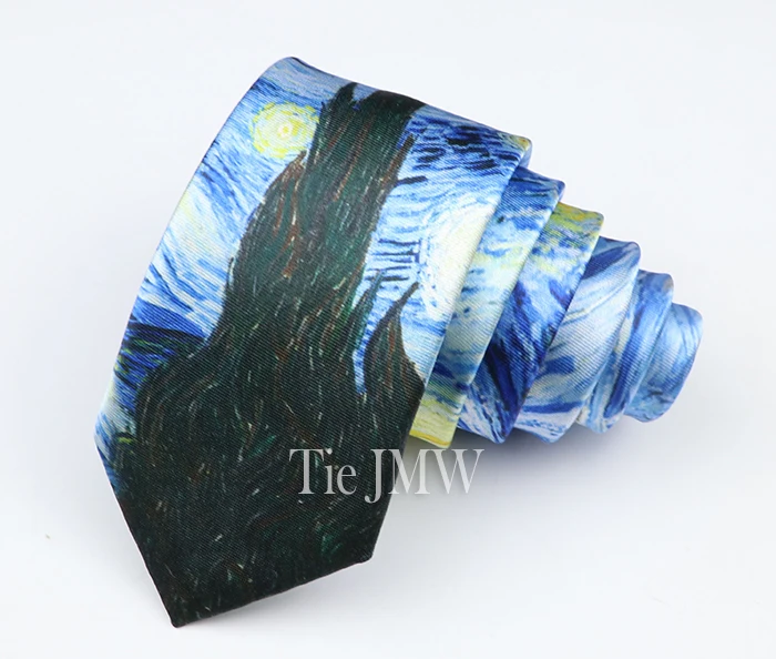 New Van Gogh Oil Painting Tie For Men Star Moon Night Retro Fun Skinny Slim Necktie Accessories Daily Wear Wedding Party Gift
