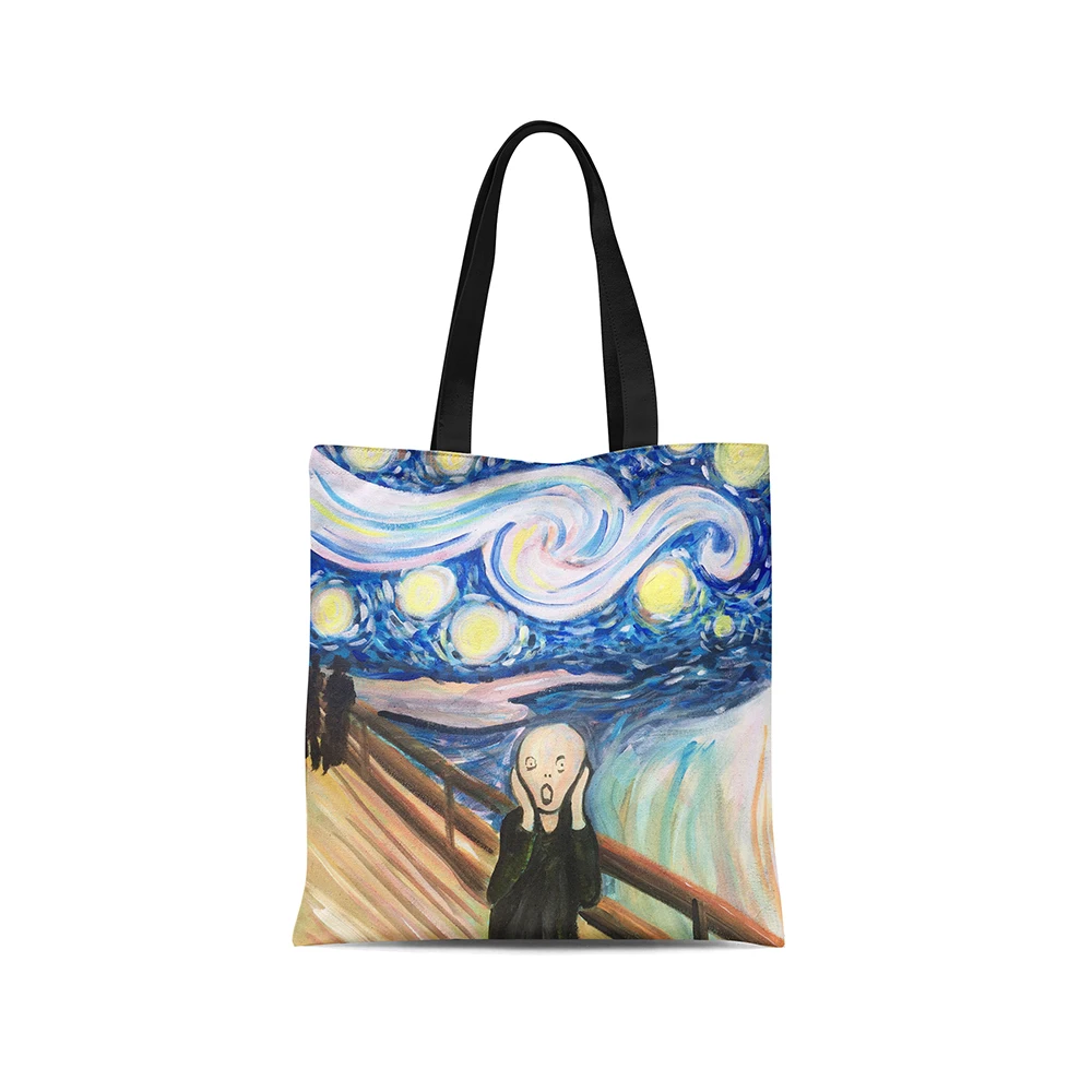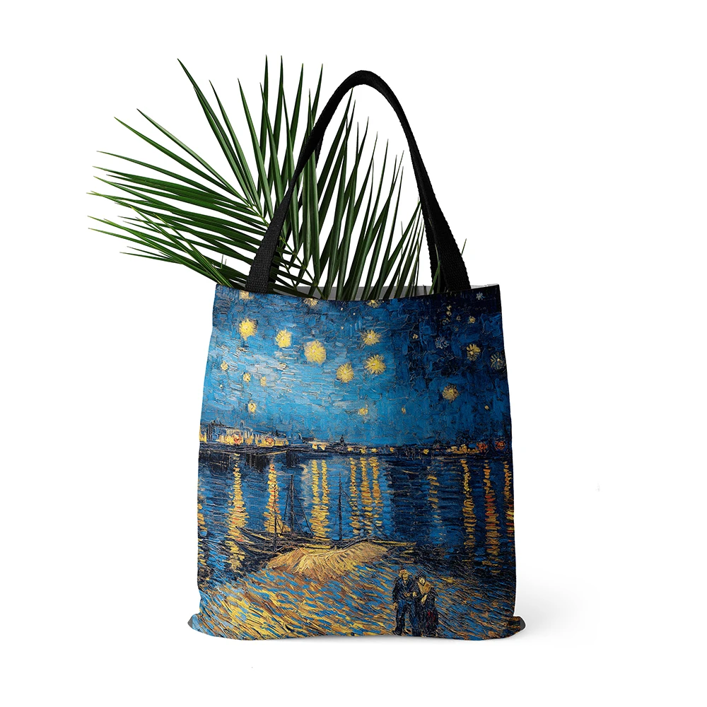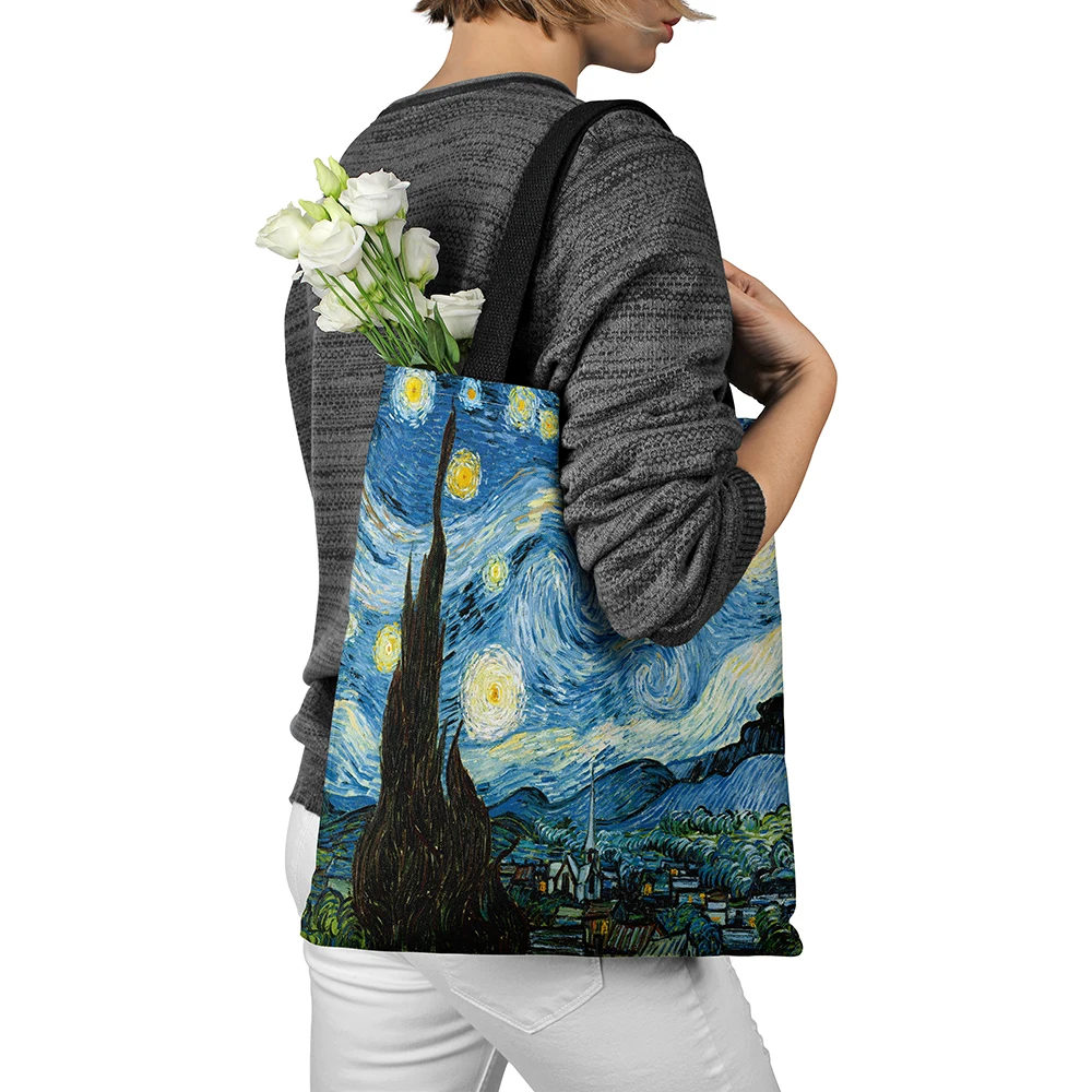 New Women Canvas Shopper Bag High Quality Tote Bag With Zipper Van Gogh Large Capacity Shoulder Bags Fashion ECO Shopping Bags