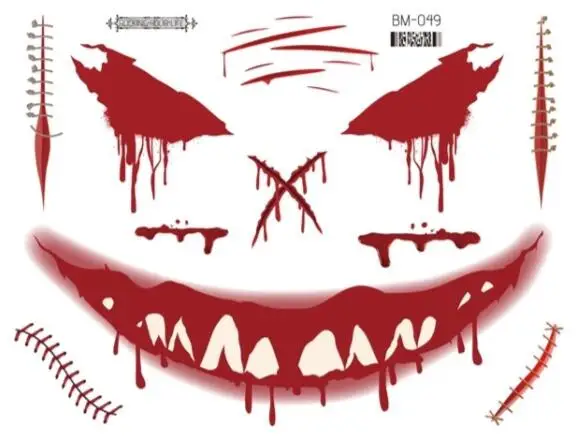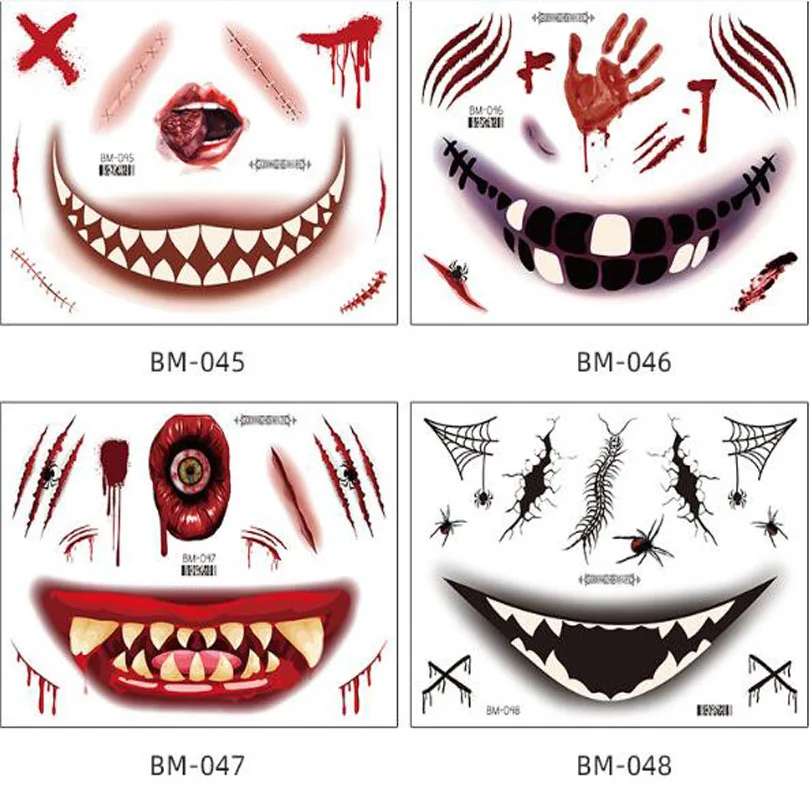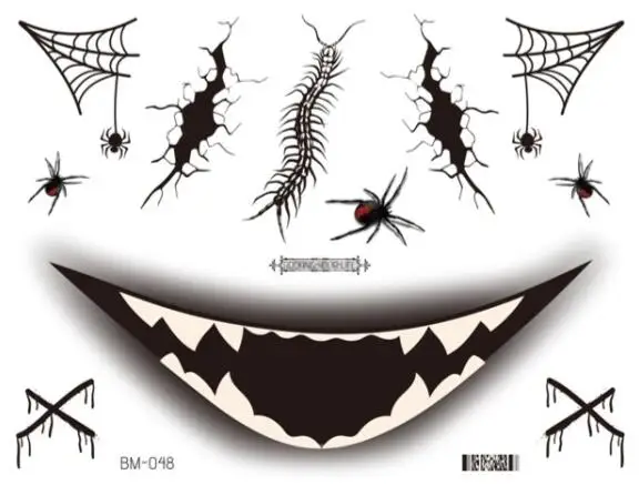 Newest Halloween Tattoo Face Stickers Decals Bat Scar Body Art Fake Tattoos DIY Makeup Masquerade Decorations Women Men Tattoos