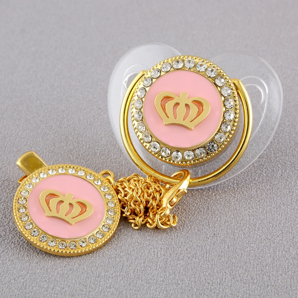 Newest Luxury Golden Bling Crown Bear Baby Pacifier with Chain Clip Newborn BPA Free Bling Dummy Soother Chupeta 0-12 Months