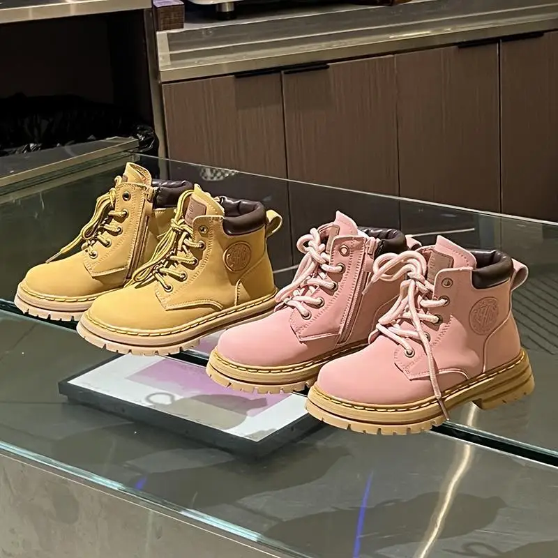 No Slip Kids Flat Ankle Boots Lace Up Winter Boy Girls Footware Warm Shoes