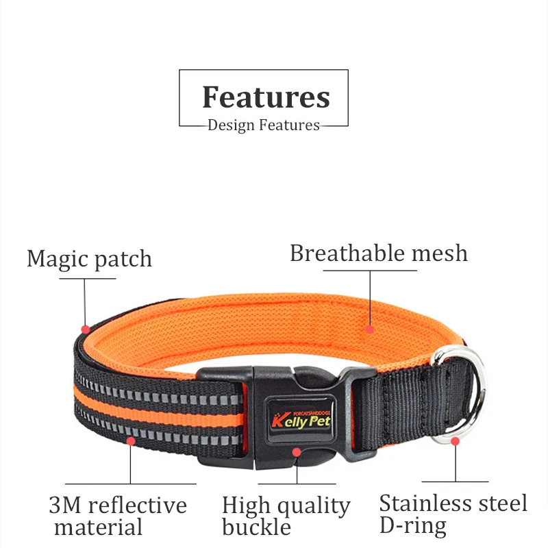 Nylon Pet Dog Collar Reflective Breathable Mesh Dog Collars and Leash Set Small Medium Large Dog Training Rope Puppy Collar