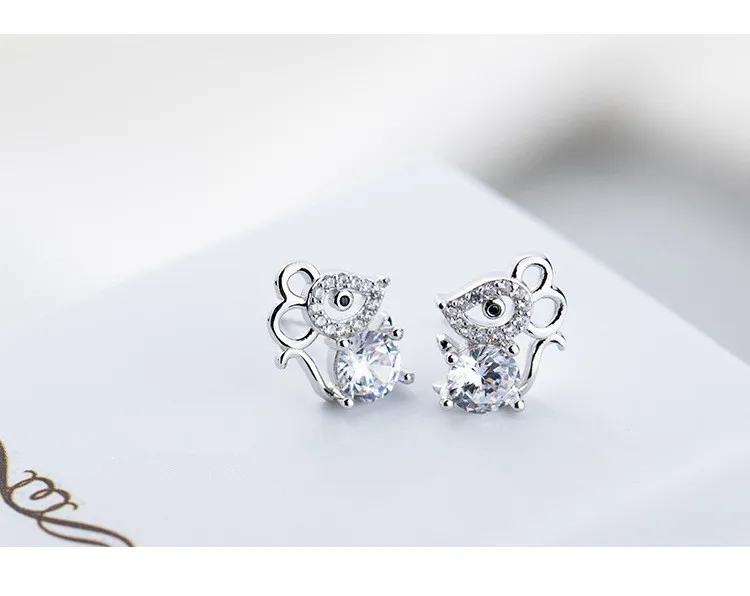 OBEAR Siver Plated Cute Mouse Micro Zircon Ear Studs Women Jewelry Girls Kid Birthday Gift Cute Animal Earrings