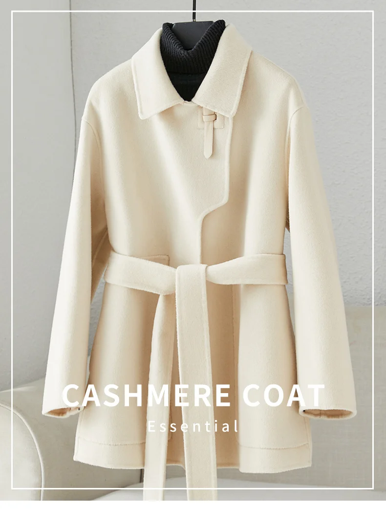Off white double-sided cashmere coat for women, short and small, 2023 new 100 pure wool double-sided coat