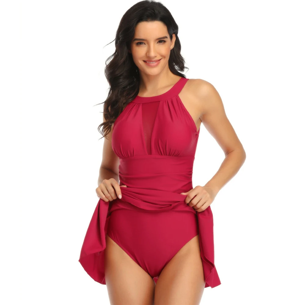 One Piece Swimsuit Woman 2023 Tummy Control Swimdress Plus Size Push Up Cute Muslim Gym Bathing Suit Swimwear With Skirt Shorts