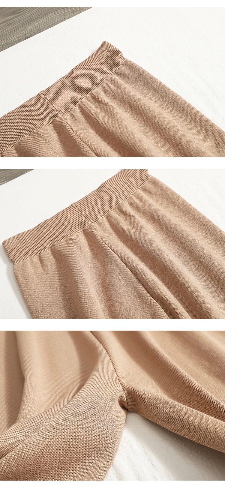Open Round Neck Knit Shirt, High Waist Thin Wide Leg Pants, Two-Piece Suit, Temperament Hit Color, Autumn and Winter Fashion
