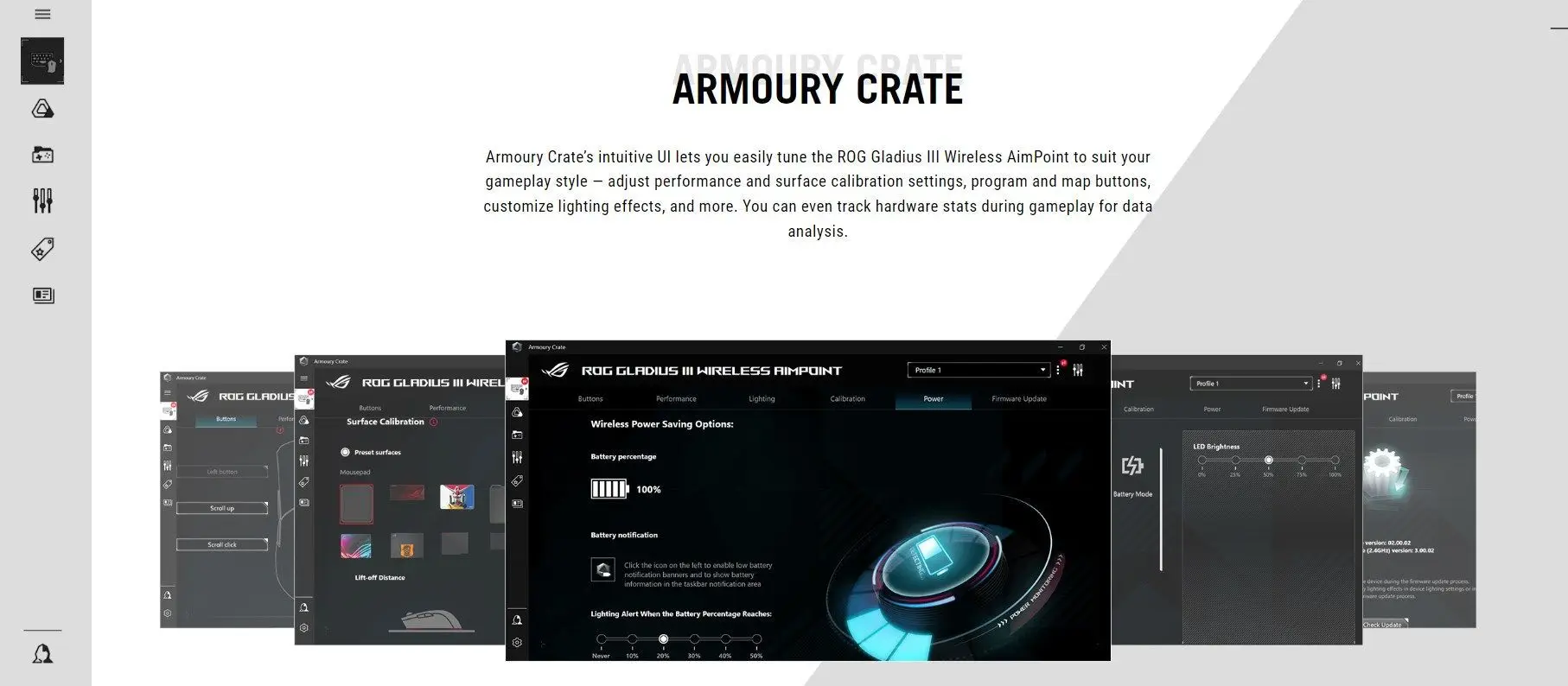 The ROG Gladius III Wireless AimPoint is a lightweight 79-gram wireless RGB gaming mouse that features a 36,000-dpi ROG AimPoint optical sensor, tri-mode connectivity, ROG SpeedNova wireless technology, swappable mouse switches, ROG Micro Switches, pivoted button mechanism for 0 ms click latency, ergonomic design, ROG Paracord, 100% PTFE mouse feet, six programmable buttons, and mouse grip tape.
