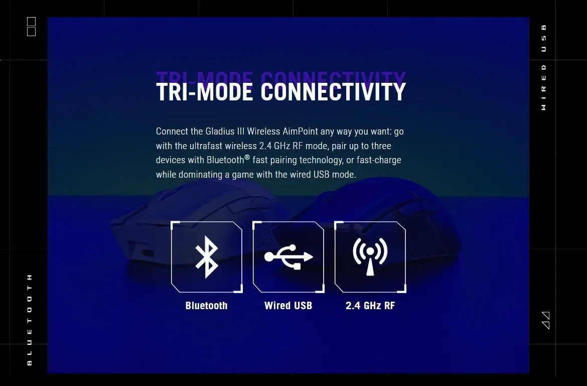 4.Push-Fit Switch Socket II: Swappable switch design for easy customization; Gladius III Wireless AimPoint includes ROG Micro Switches and is compatible with other 3-pin mechanical and 5-pin optical micro switches