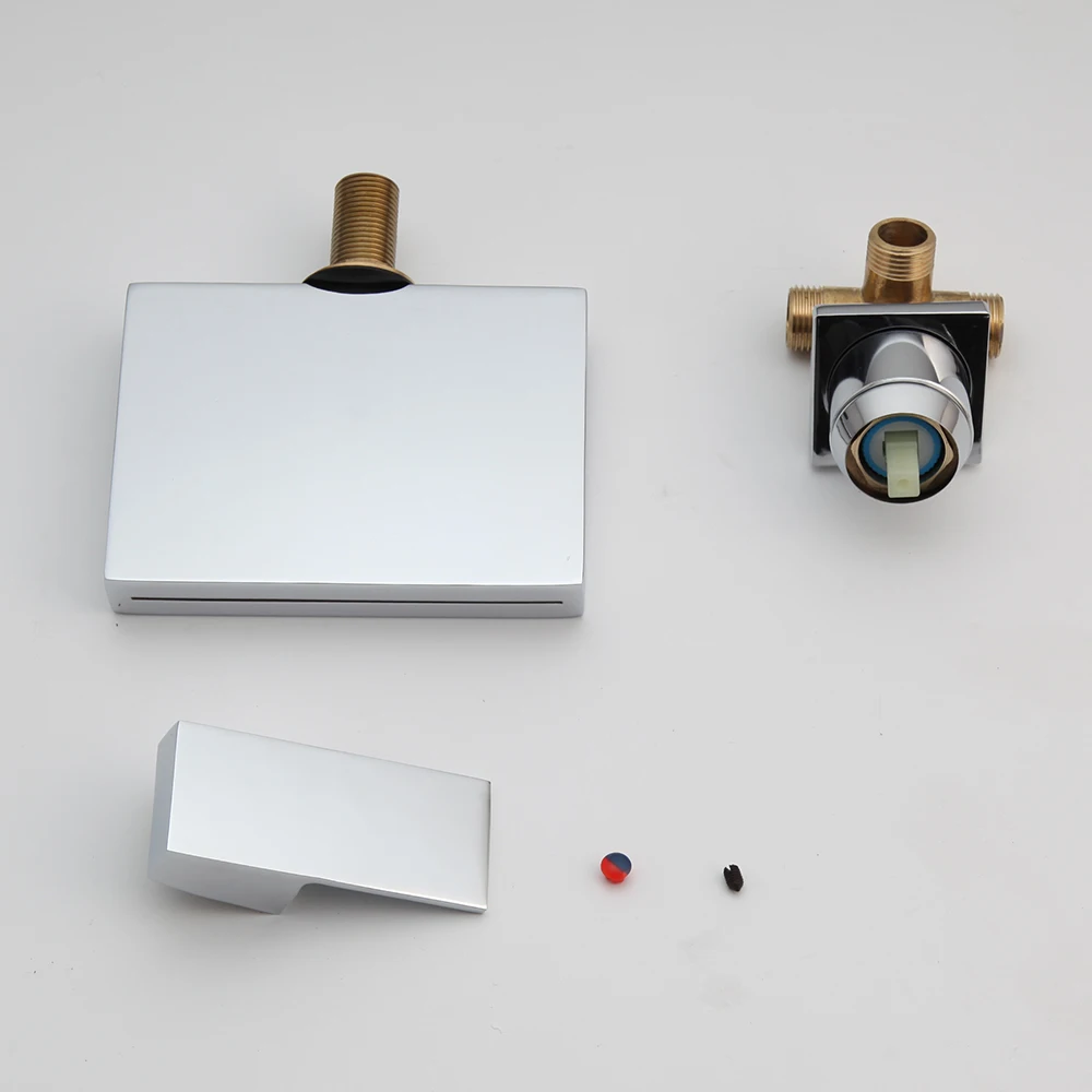 OUBONI LED Waterfall Bathtub Faucets Chrome Polished & Black Wall Mounted Bathroom Single Handle Basin Sink Tap Mixer Tap Faucet