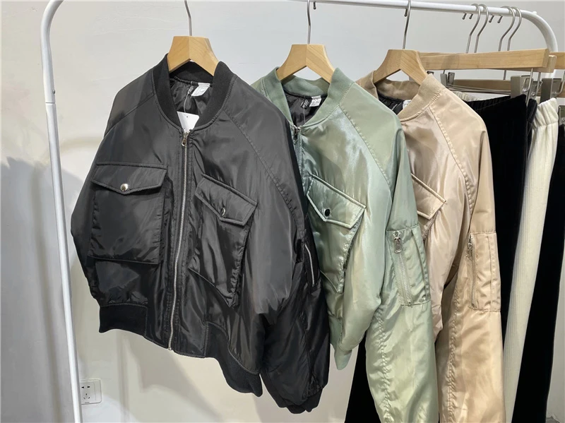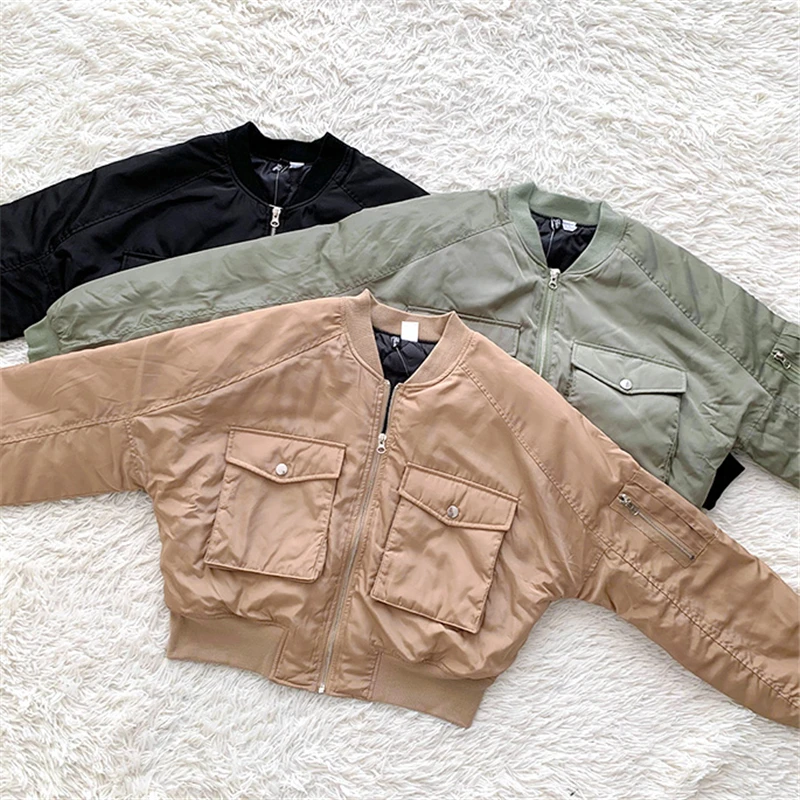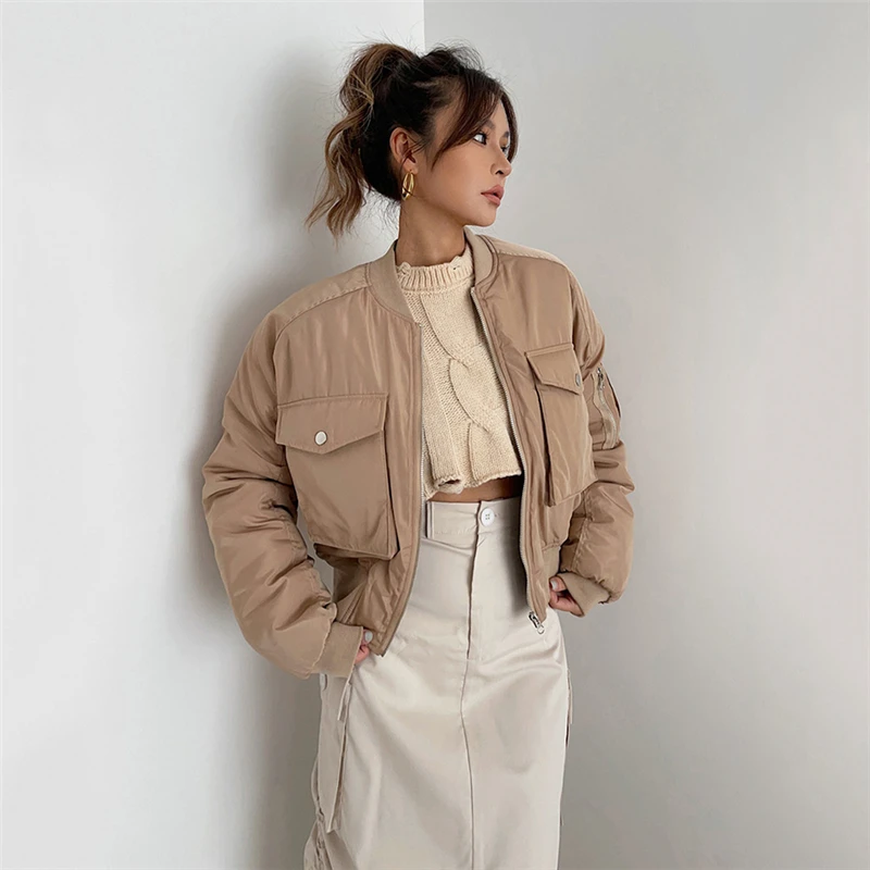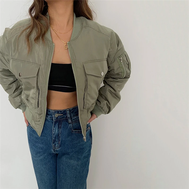 Padded Bomber Jacket Women Streetwear Long Sleeve Zipper Warm Coat 2022 Autumn Winter Fashion Casual Military Style Outerwear