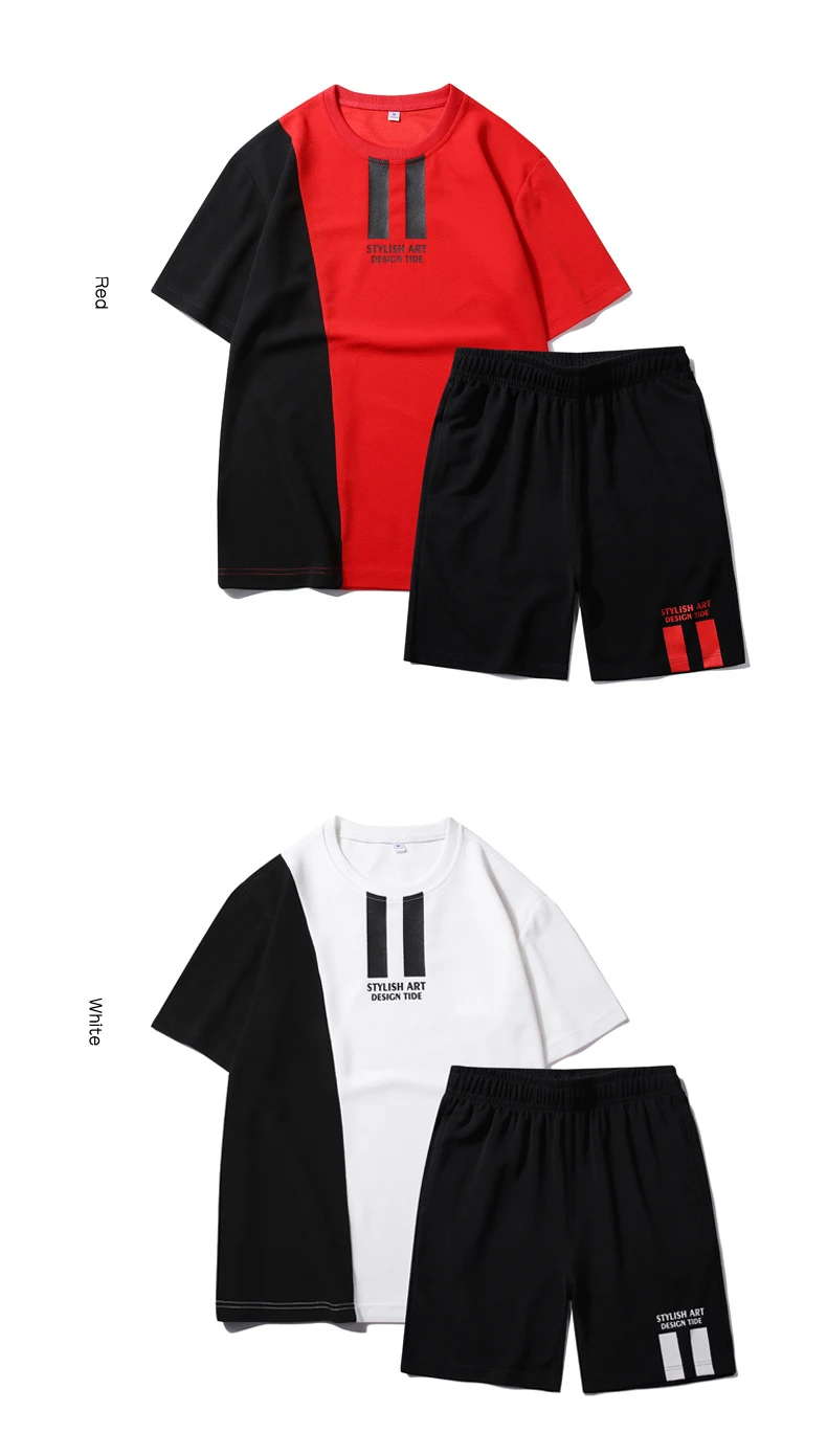 Patchwork Men Tracksuit Set T Shirt Summer Two Pieces Sporting Track Suit Male Sets Printed Tee Tops Shorts Set Mens Track Suit