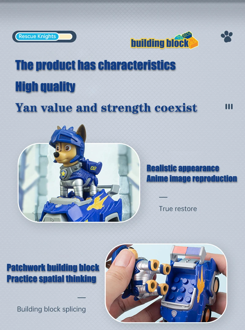 Paw Patrol Toys Rescue Knight Return Car Building Block Chase Skye Action Figure Puppy Patrol Canina Model Children’s Toy Gifts