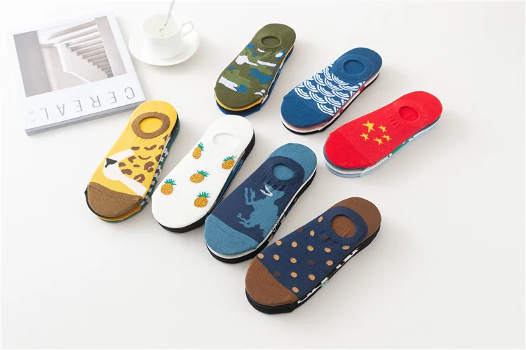 PEONFLY 2020 spring and summer new combed cotton deodorant men socks Simpson cartoon couple in Funny Happy Sock Slippers