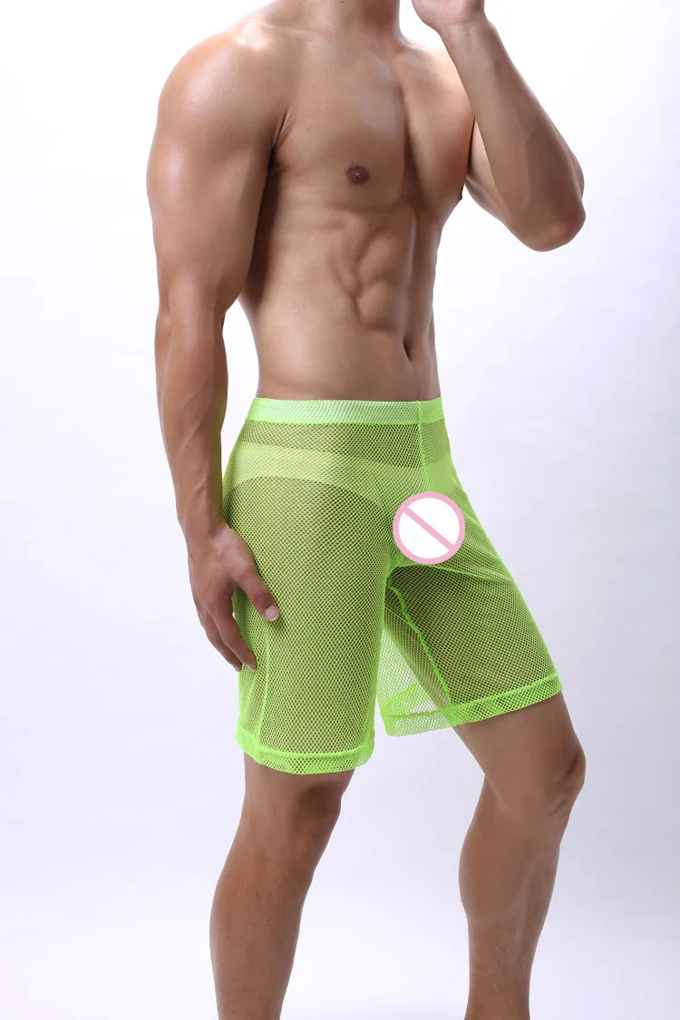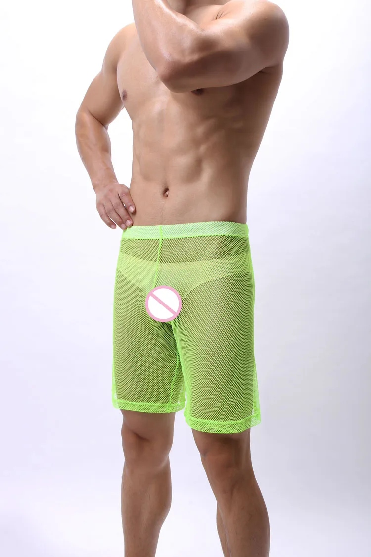 Pijama Hombre Sexy Mens Sleepwear Big Mesh See Through Men’s Home Lounge Pajamas Sleep Shorts Bottom Mens Sheer Pajamas