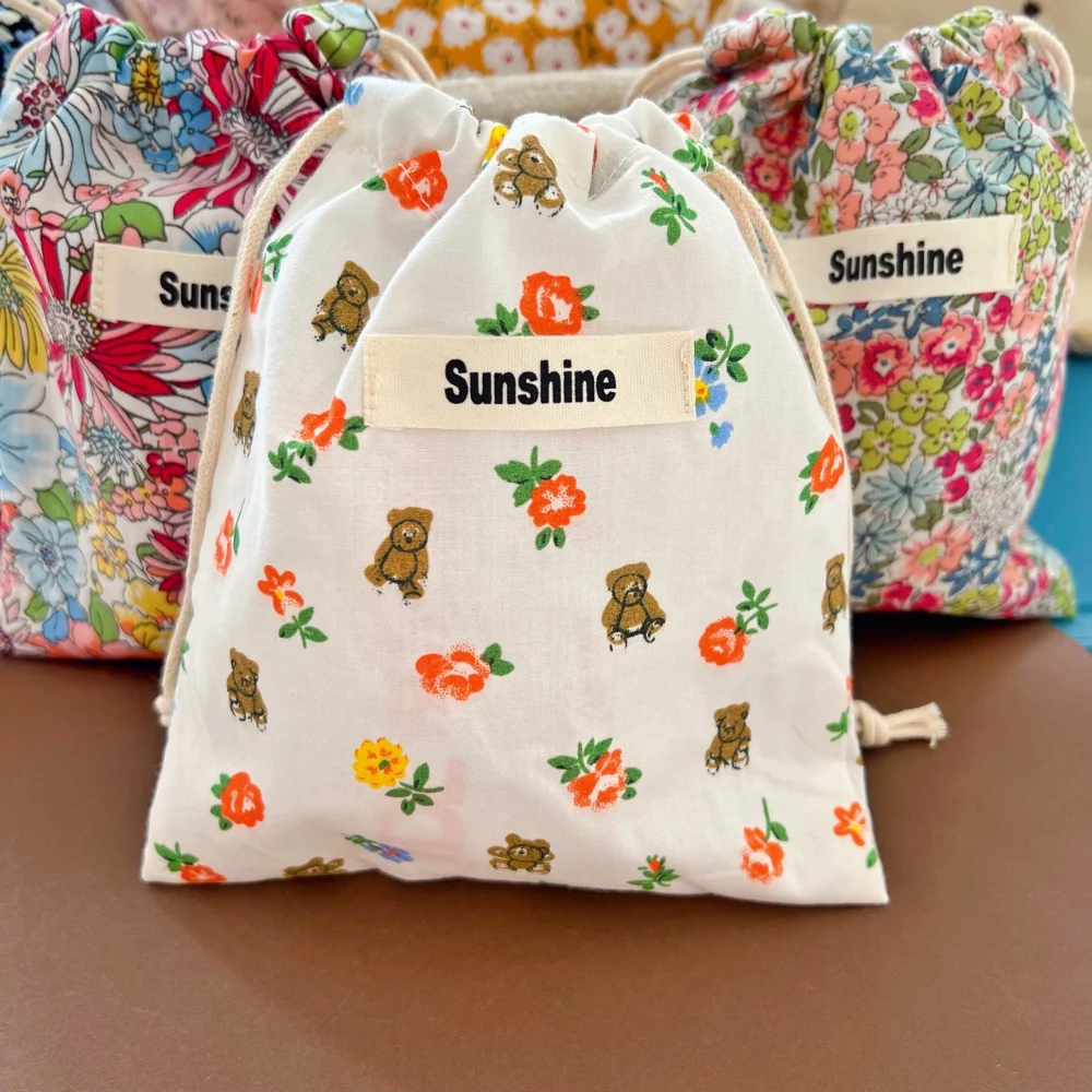 Printed Flower Mommy Bag Baby Diaper Bag Cotton Nappy String Pocket Stroller Carry Pack Travel Outdoor Diaper Storage Bag