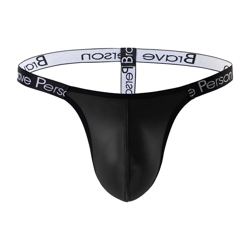 PU Leather Gay Swim Thong Men Swimwear Briefs Brave Person Tanga String Homme Sexy Hot Porno Bikini Bath Trunks Underwear 2020