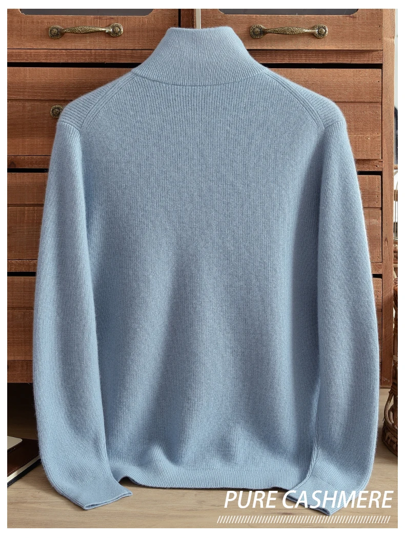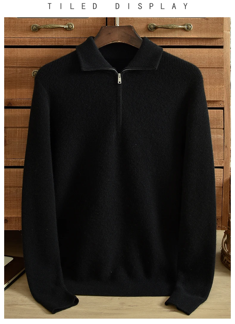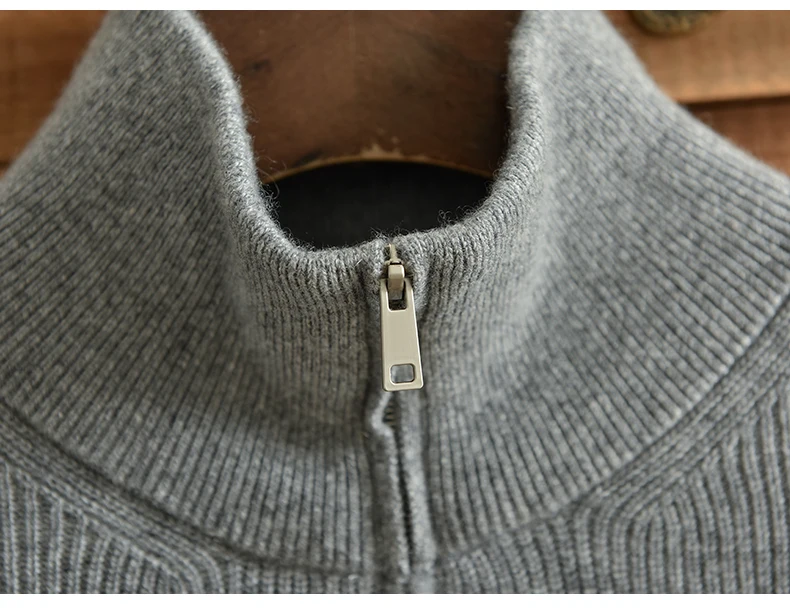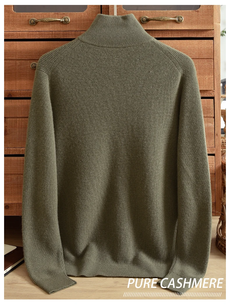 Pure Cashmere Sweater Men’s High Neck Zipper Pullover Solid Color Knitted Polo Collar Winter Thickened Warm Large Sweater