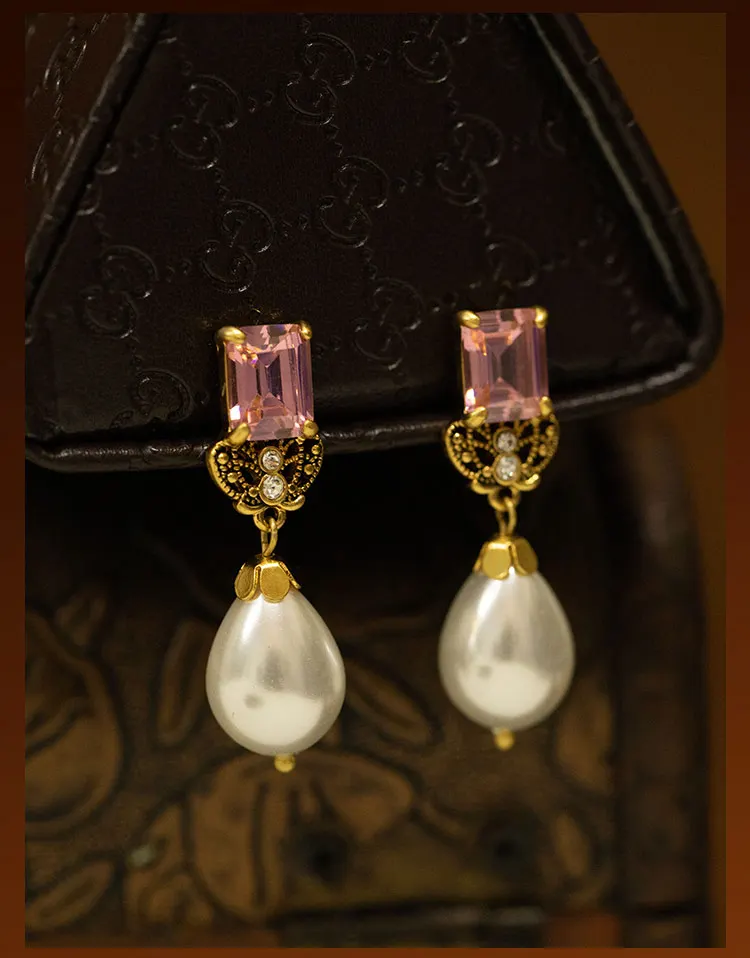 Purple Gemstone Stud Earrings Pearl Pendant Earring S925 Sterling Silver Pin 18K Gold Plated Fashion Elegant Jewelry Accessories