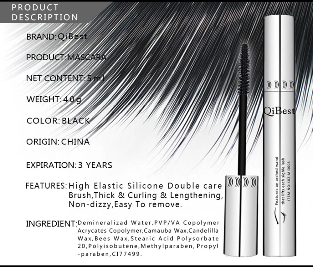 QIBEST Black Mascara Eyelashes Makeup 4D Silky Eyelashes Lengthening Eye Cosmetics Eyelashes Makeup Waterproof Mascara Volume