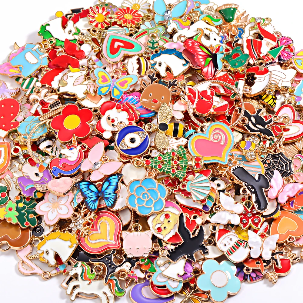 Random Mix 20Pcs Enamel Pendant Love Rainbow Flower Bee Butterfly Animal Plant Alloy Charm For Diy Earrings Jewelry Making Gift