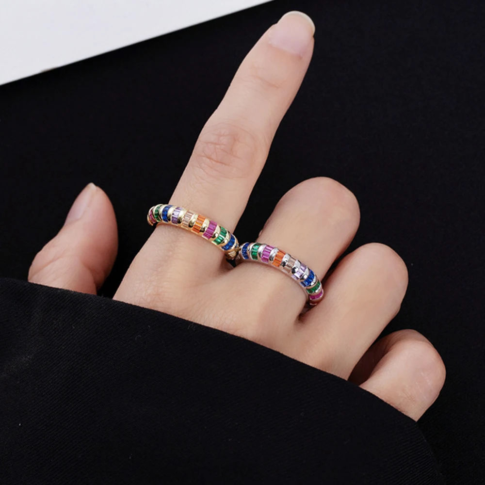 S925 Silver Rainbow Rings Women Snake Bone Colorful Diamond Ring Female Shiny 5A Zircon Advanced Design Luxury Jewelry Girl Gift