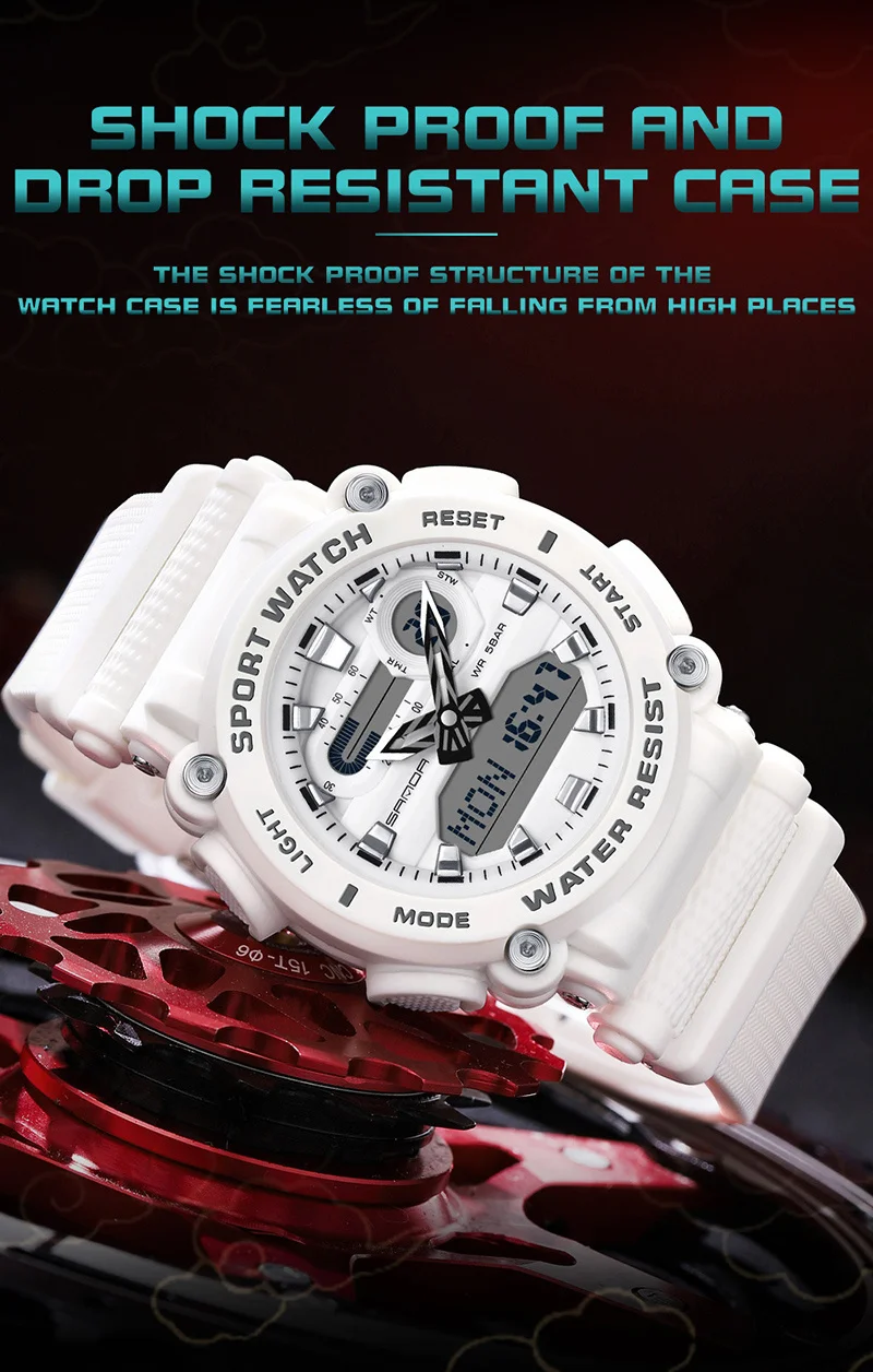 SANDA 3139 New Youth Fashion Digital Watch Shockproof Waterproof Dual Wristwatches LED Chrono Alarm Clock Mens Watches Cool Hour