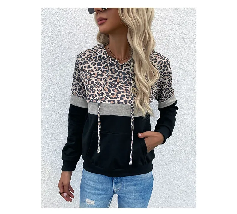 Sandro Rivers Hoodies For Women Camo Leopard Print Tops Pullover Hooded Sweatshirt Drawstring With Pocket