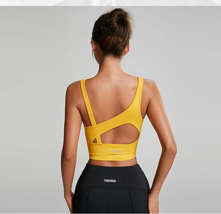 Seamless knitted Fitness bra Women’s Shockproof Exercise Training Quick Drying Irregular Beauty Back Yoga Vest With Fixed Cup