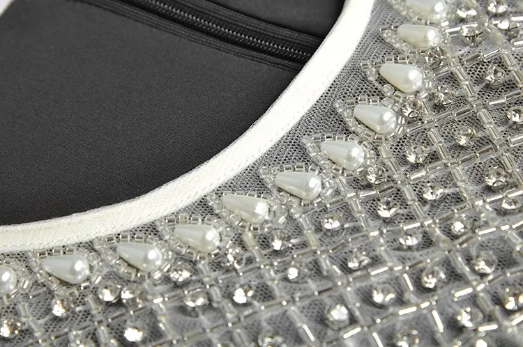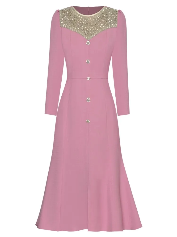 Seasixiang Fashion Designer Autumn Mermaid Dress Women O-Neck Long Sleeve Beading Crystal Button Office Lady Midi Dresses