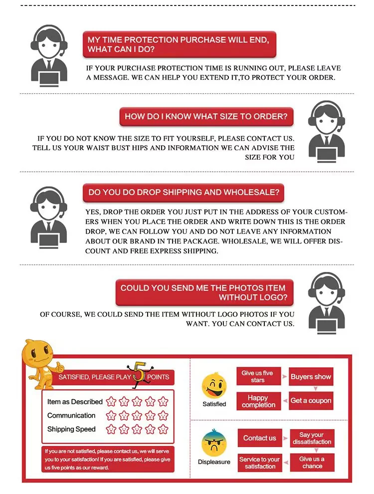 4.If you’re not sure about the size,please do not hesitate to contact us,and we will give you some suggestions