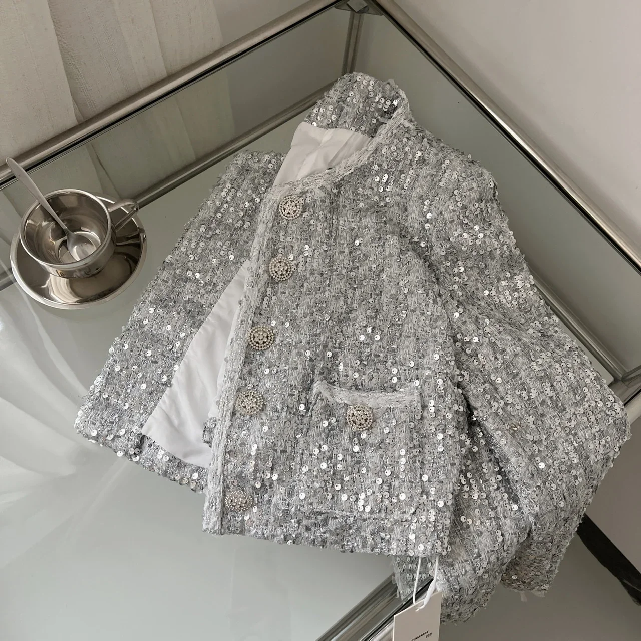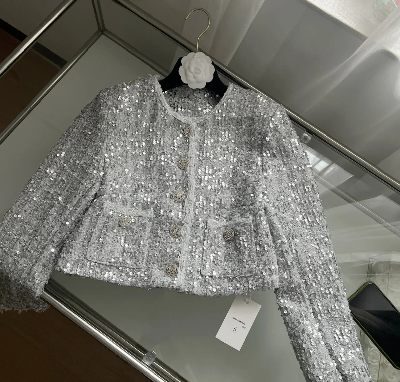 Sequins Jacket Women Autumn New Long Sleeve O Neck Blazer Coats Fashion Office Lady Single Breasted Jackets